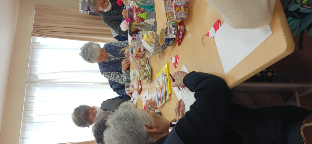 みんなで飾り用の凧を作ってみました。みなさん丁寧に塗られていました。