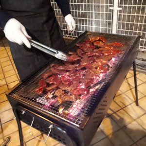 炭火でジュージューお肉や野菜を焼いて、みんなおなかいっぱいになりました。