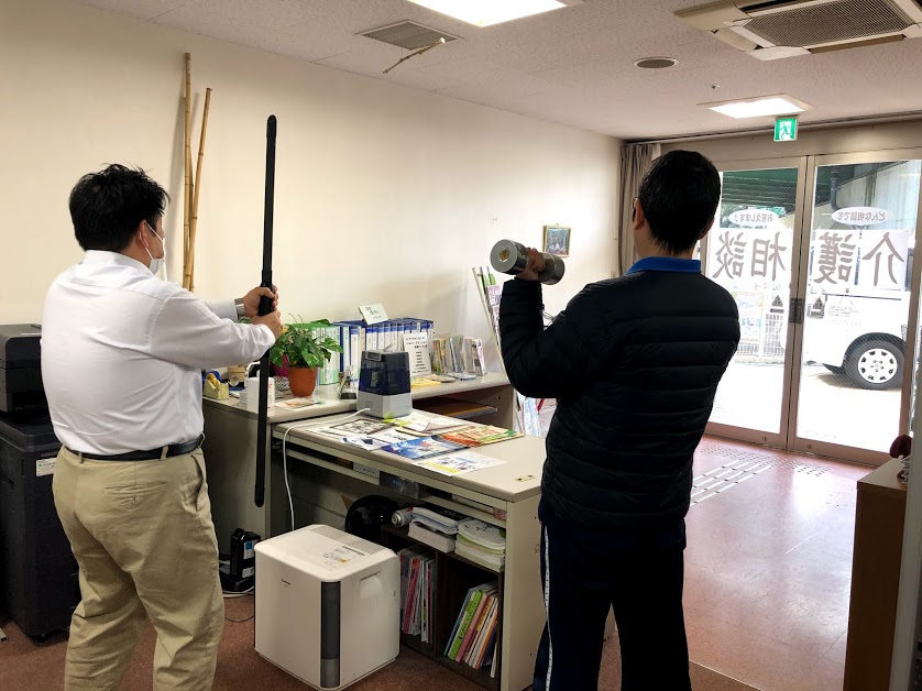 さらに職員宅より持参した鉄アレイと懐かしのボディブレードも追加されました。