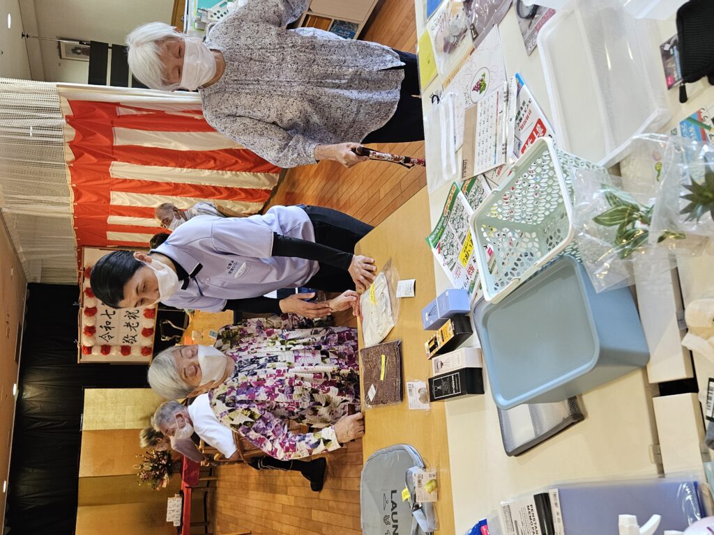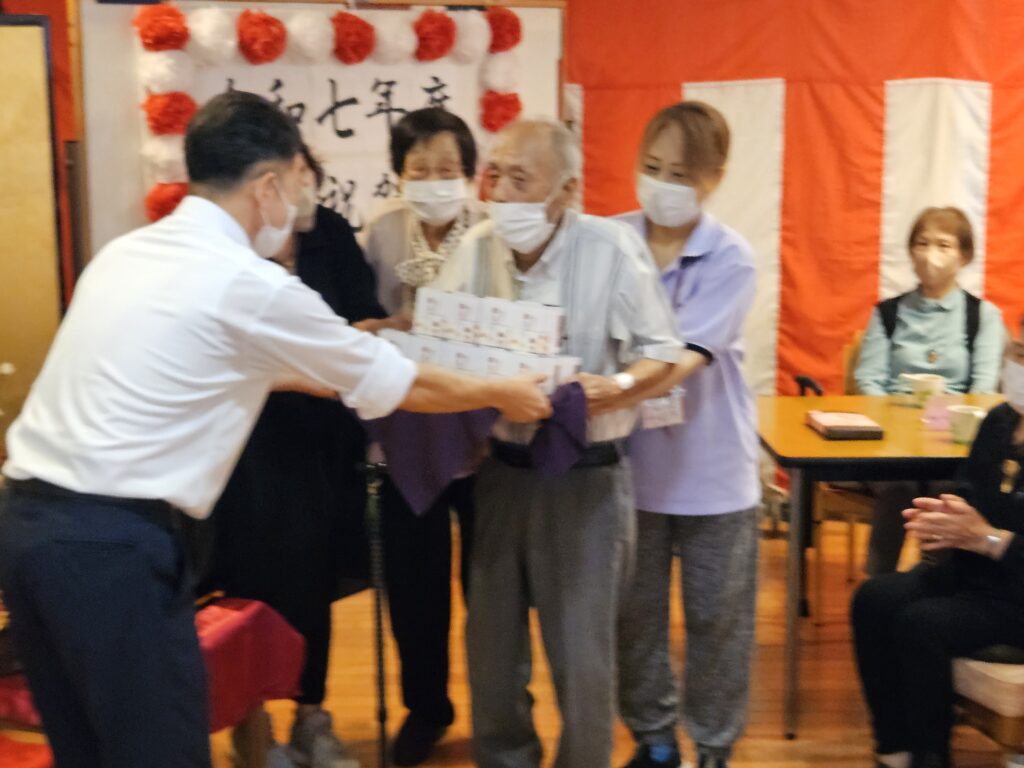 賀寿対象者様への記念品贈呈、ご利用者様代表への記念品贈呈です。