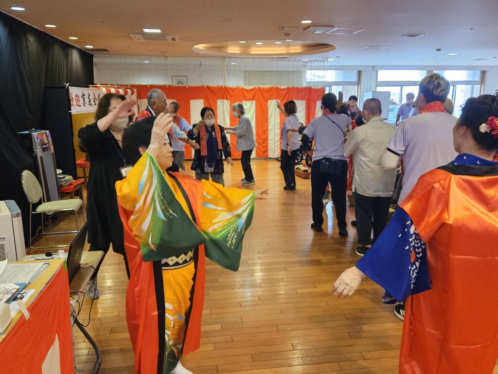 最後は京友会の皆さんと一緒に炭坑節を踊りました。「月が出た出た~月が出た~アヨイヨイ♪」