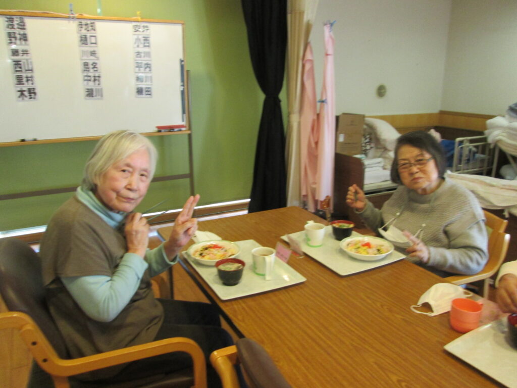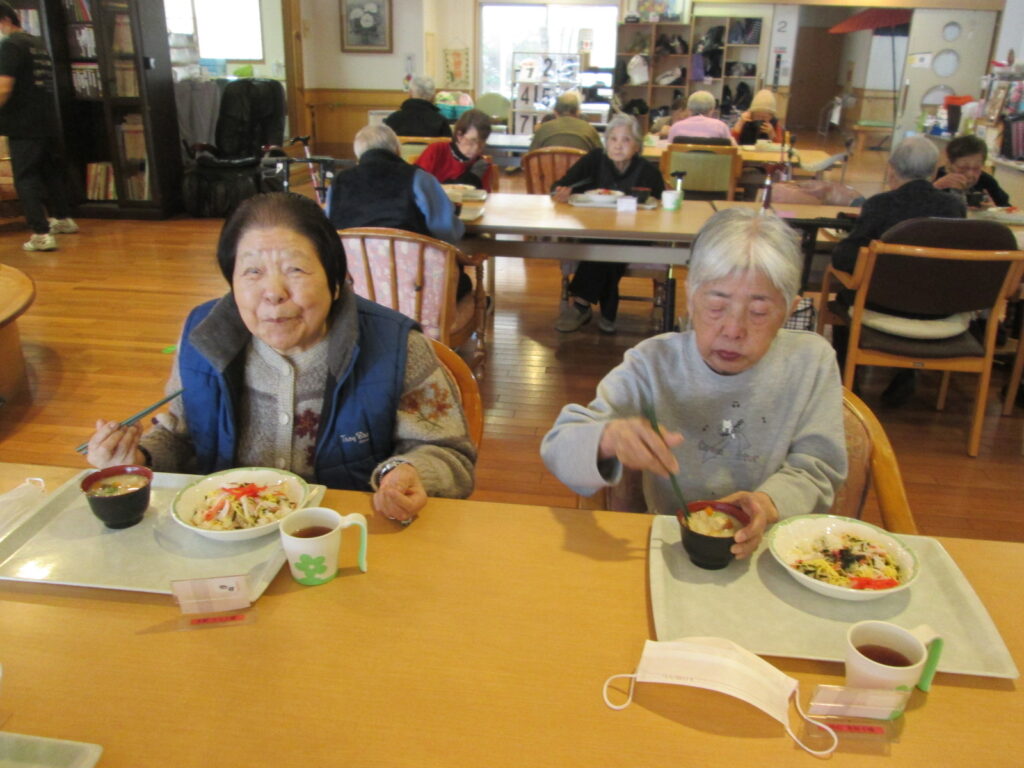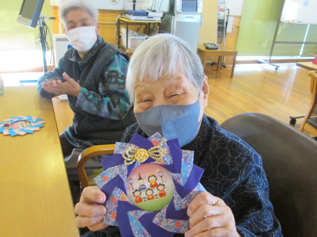 2月行事ひな祭りを行いました。 午前には、ひな飾りのリース作りを行い。昼食には粕汁とちらし寿司を提供させて頂き、ご利用者様方、おいしく召し上がれていました!