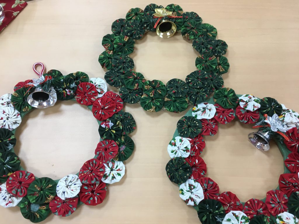 ヨーヨーキルトのクリスマスリースの仕上げに入りました…