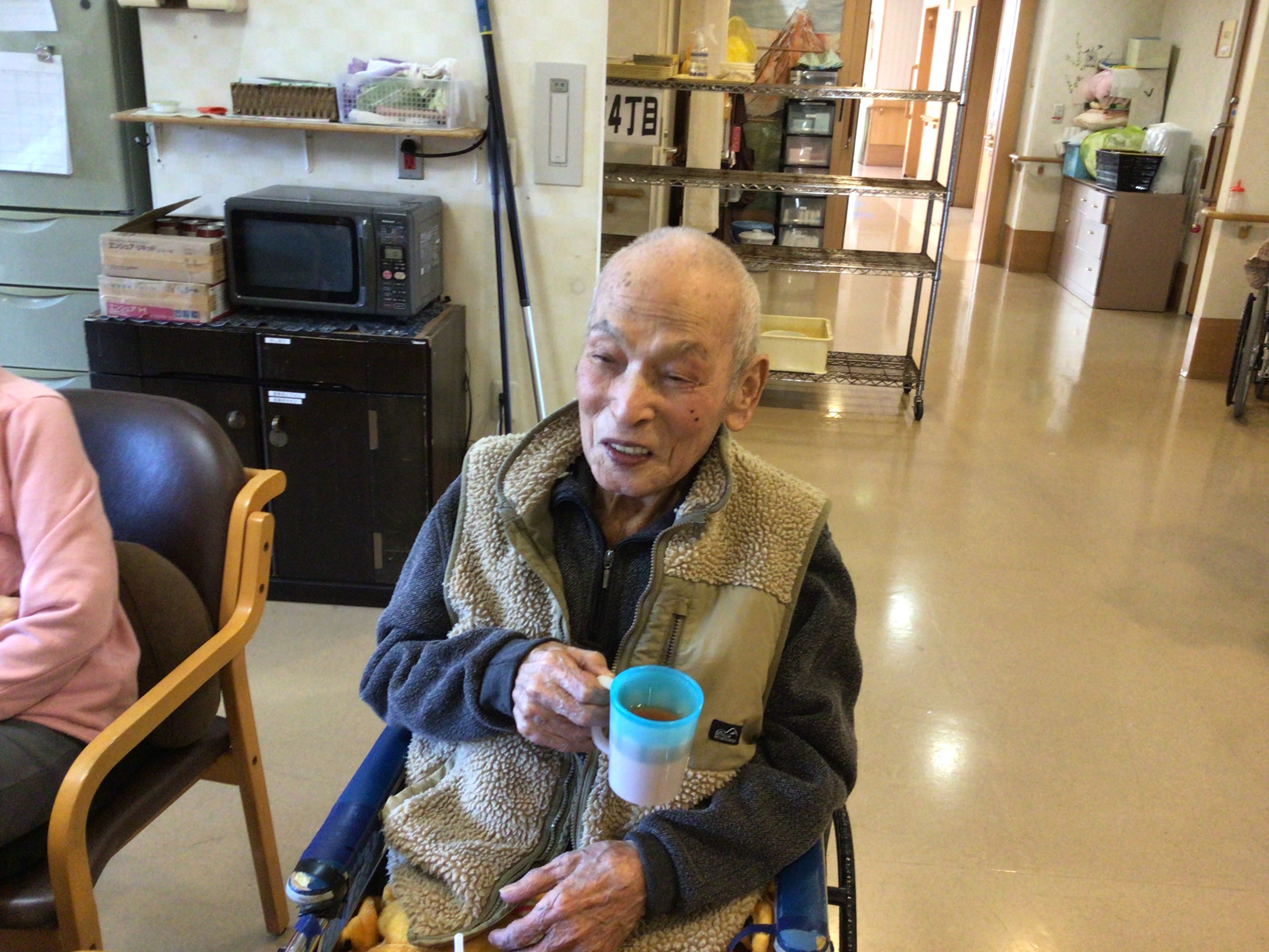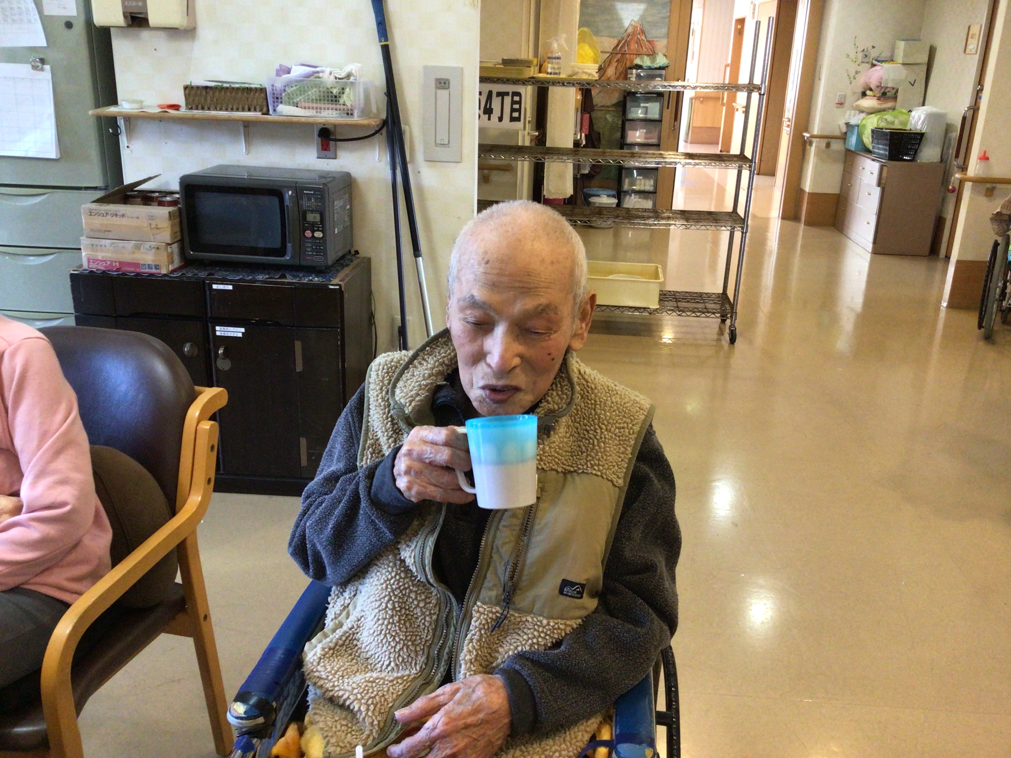入浴後は、冷たいスポーツドリンクをお出しするのですが 「熱いお茶がいい」「これこれ」と、凄く熱いお茶を希望される方もおられます。 僕は猫舌なので飲めませんわ。と伝えると 笑顔で「これくらいやないと、美味しくないよ」と仰られます。 写真を撮ろうとすると「横になりたい」との事で 写真を撮らずに、横になっていただく時もあります。 色々楽しめるものはないか、考えながら職員は毎日一緒に生活しています。 東4丁目の皆さん、今は皆さん元気で過ごされています。 うちの親は、こういうのが好きでした。 そういう意見があれば、また教えて下さい。 最後まで読んで頂き有難うございます。 次回は、中頃に予定している行事の様子を載せます。