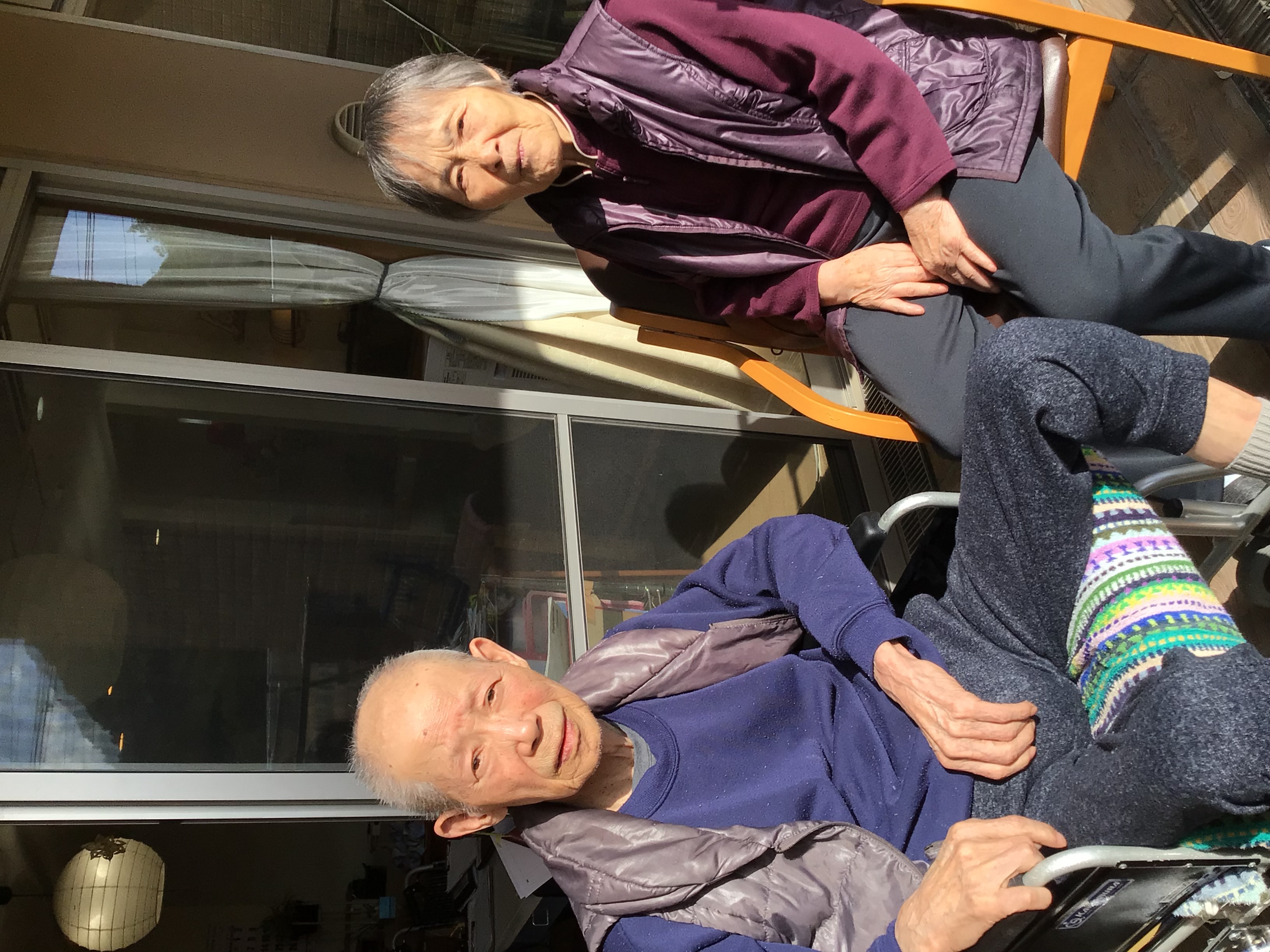 暖かい時は、希望者のみベランダに出て頂いたりしています。 外の空気に触れる事で、少しでも季節感を感じて頂けたら、、と。