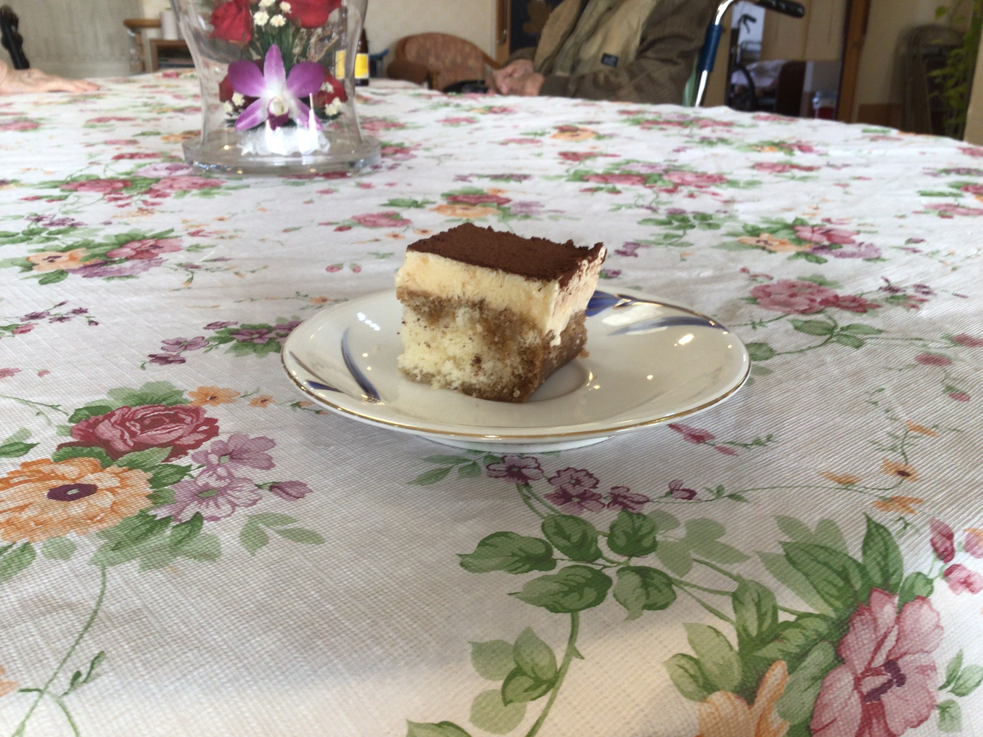 「栗か」と普段あまり食べられない方も興味が湧いたようでした。 その後、おやつの時間にはティラミスを用意させて頂きました。 僕はあまり甘いものは食べないのですが、ティラミスは割と好きなので(笑)