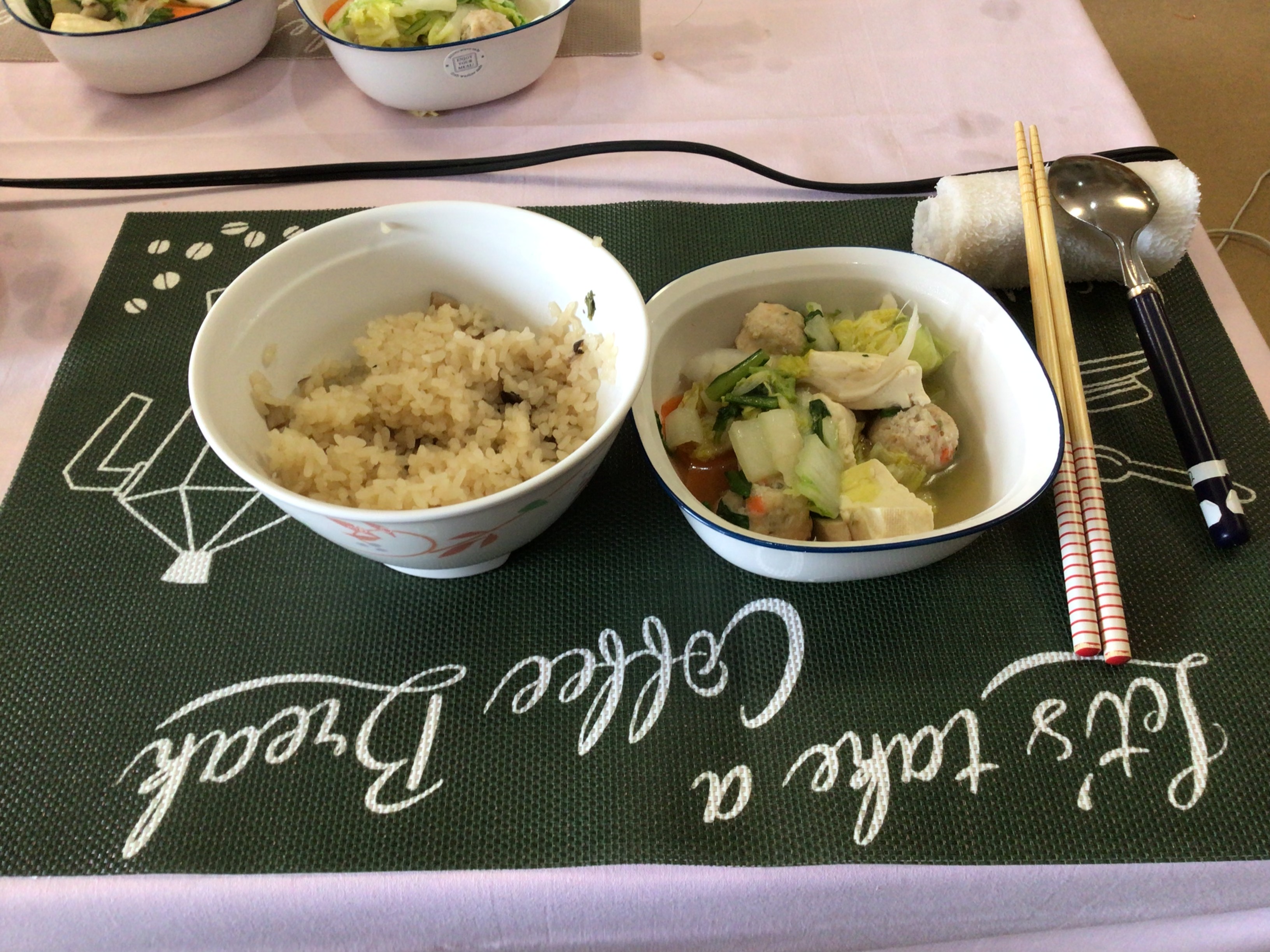 野菜たっぷりの鶏団子塩ちゃんこ鍋と、炊き込みご飯を料理しましたヽ(^o^)丿