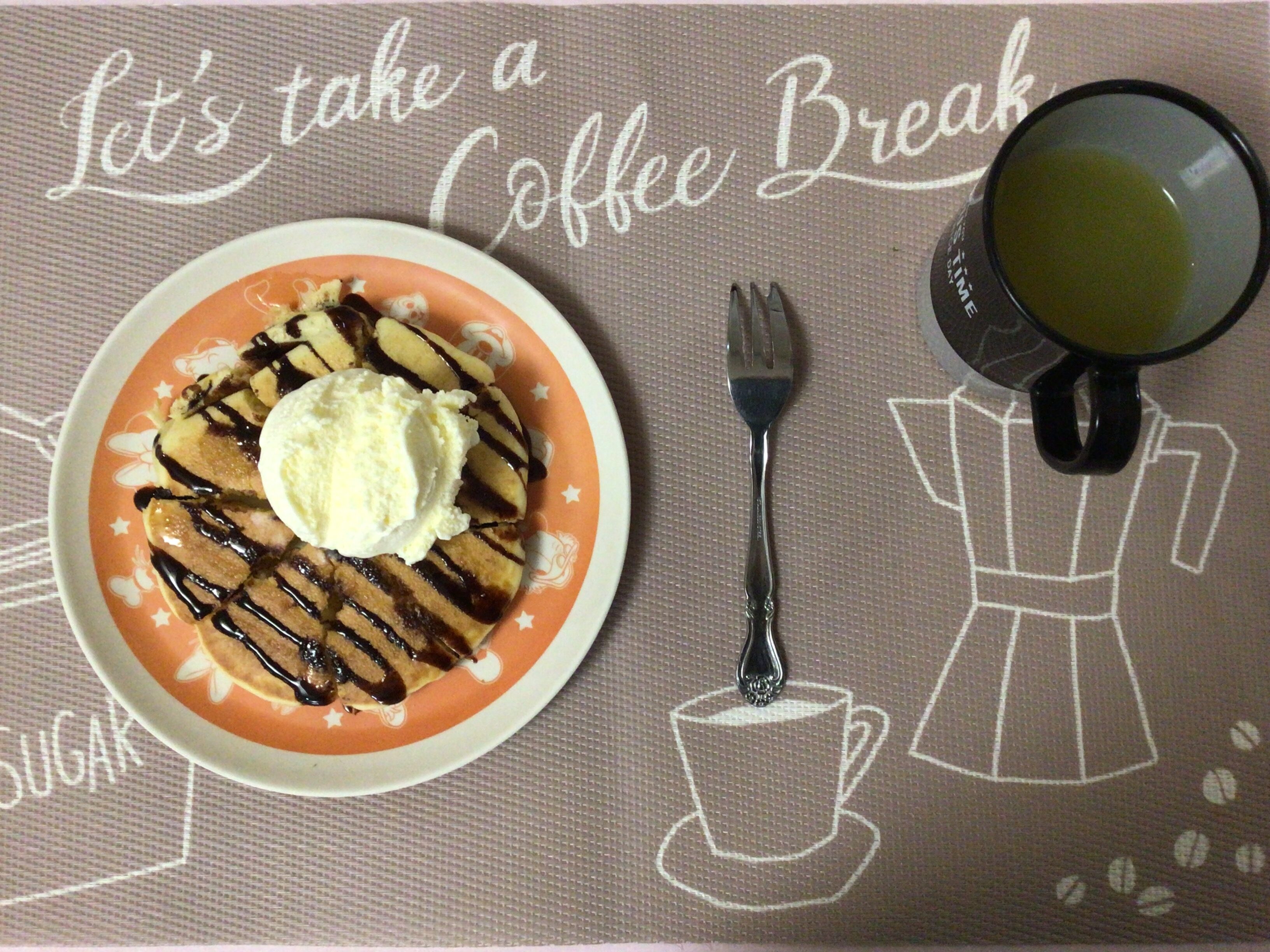 メープルシロップとチョコレートソースをかけて、さらにアイスクリームも乗せました(*^_^*)