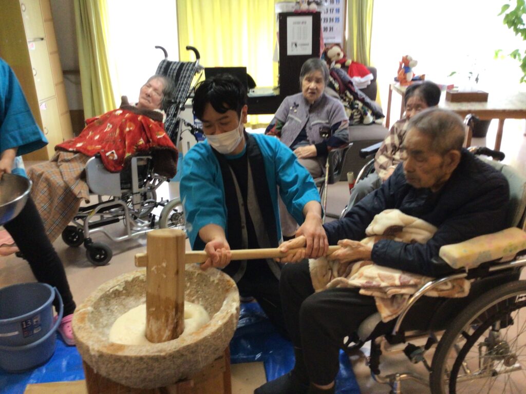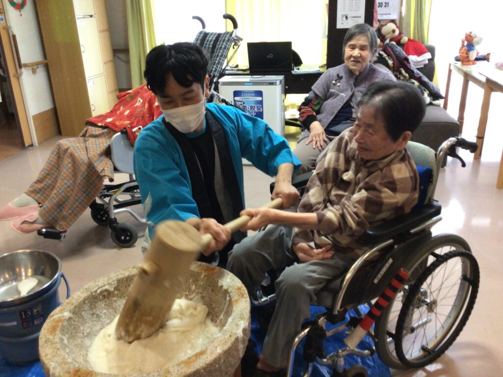 今回は12/28に実施したお餅つきの様子をお届けします(*^。^*)