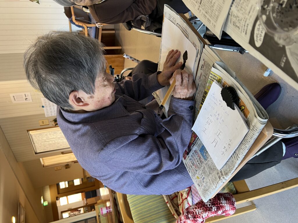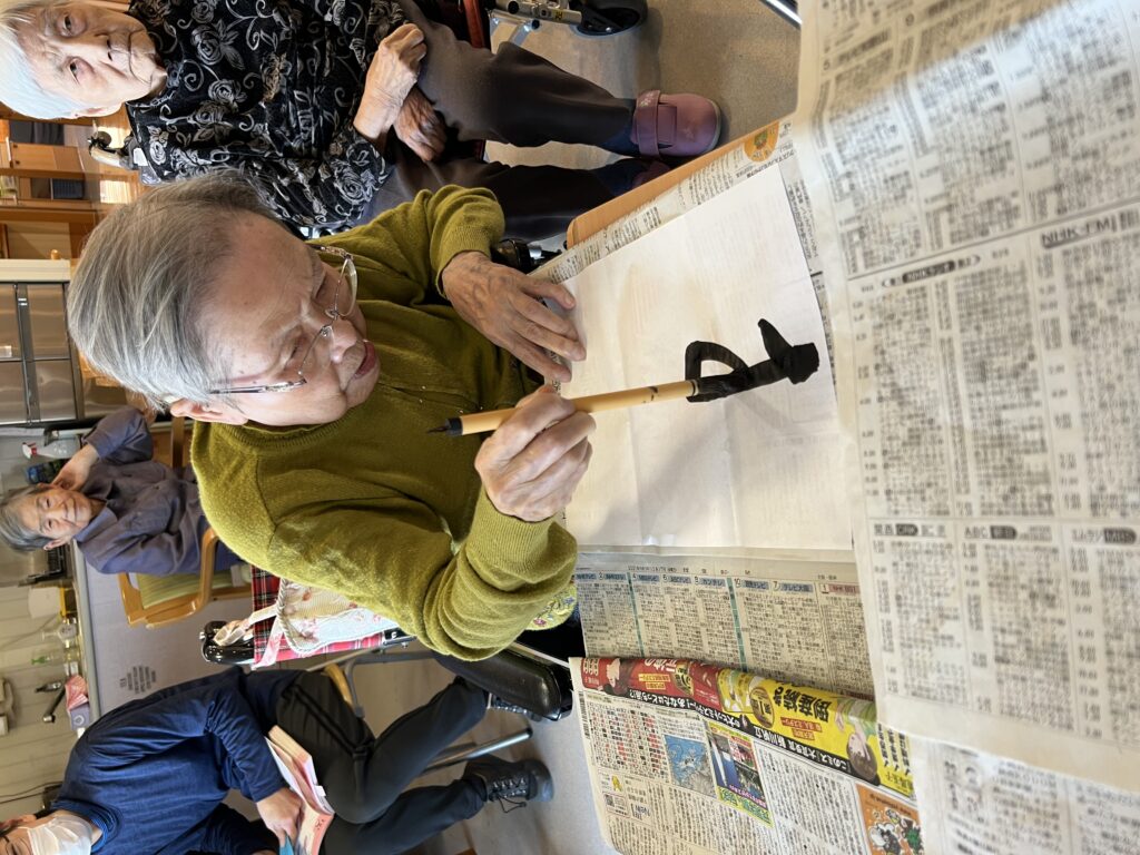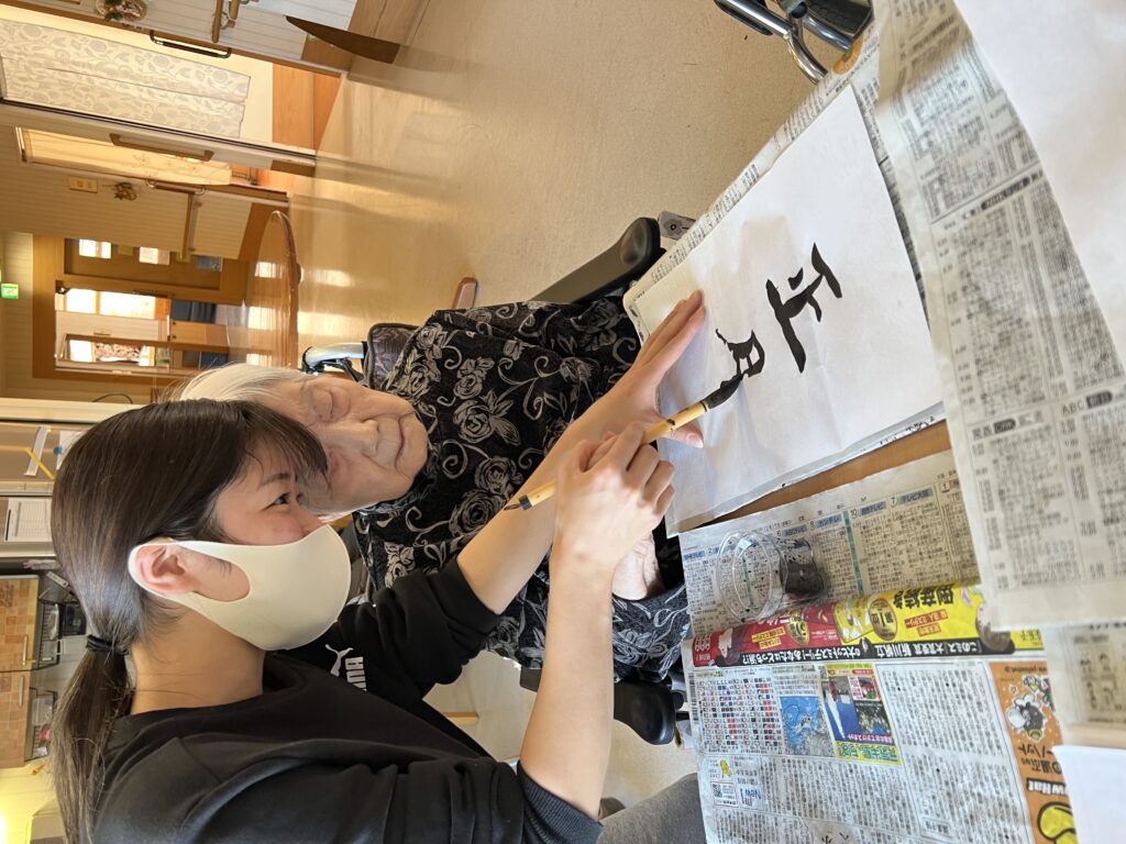 みんなでごちそうを食べたり、書初めをしたりしました(^^♪