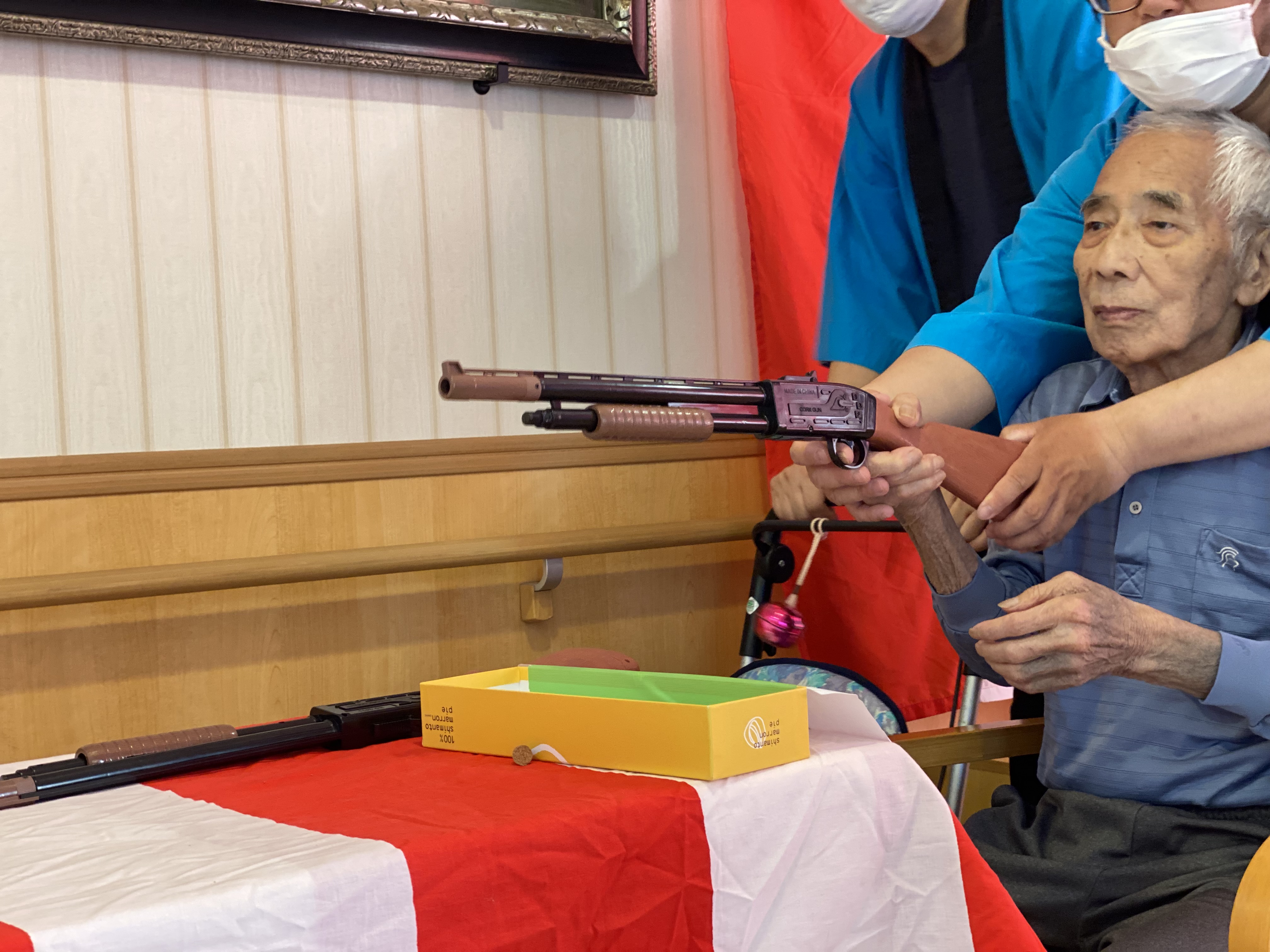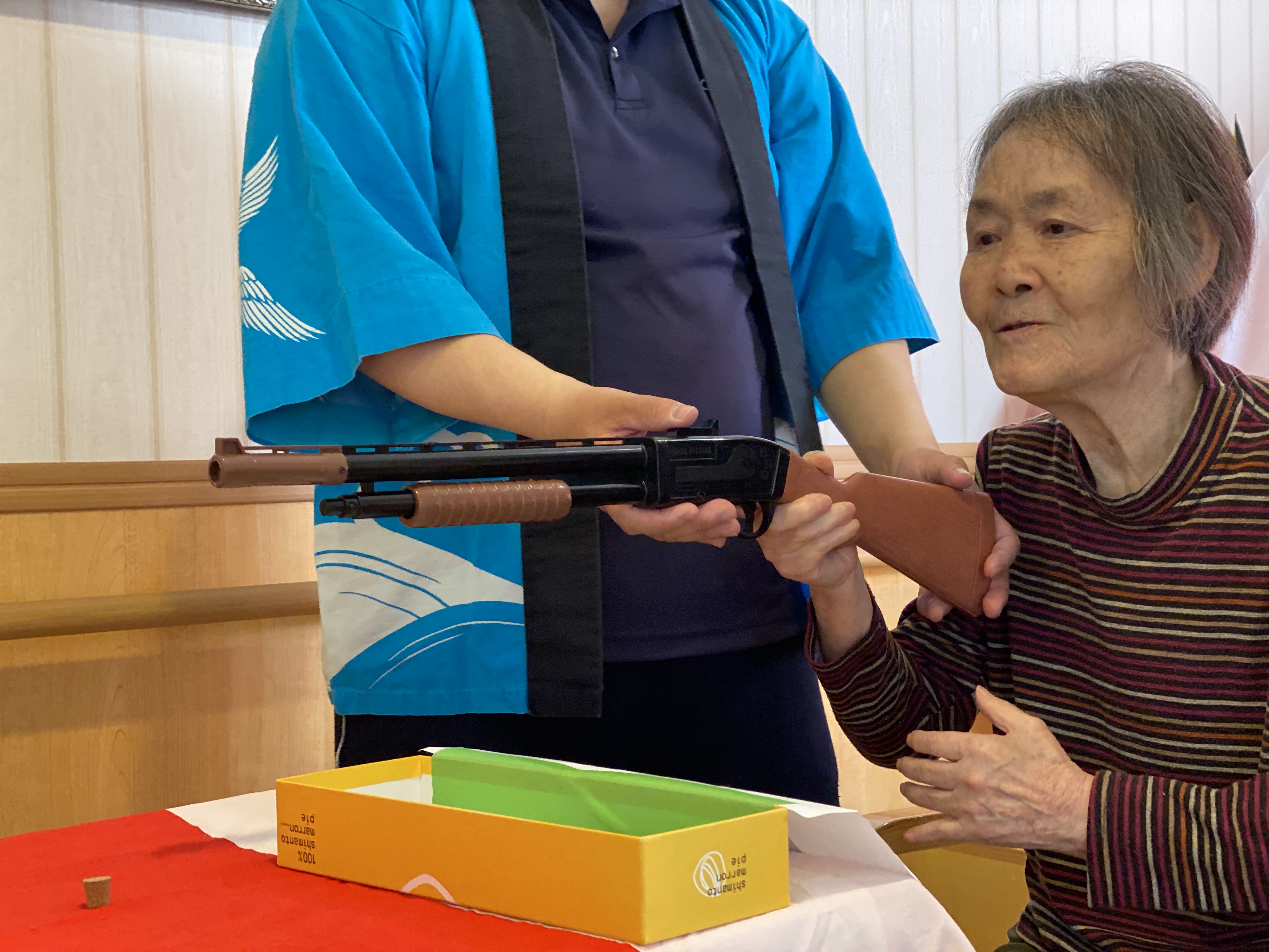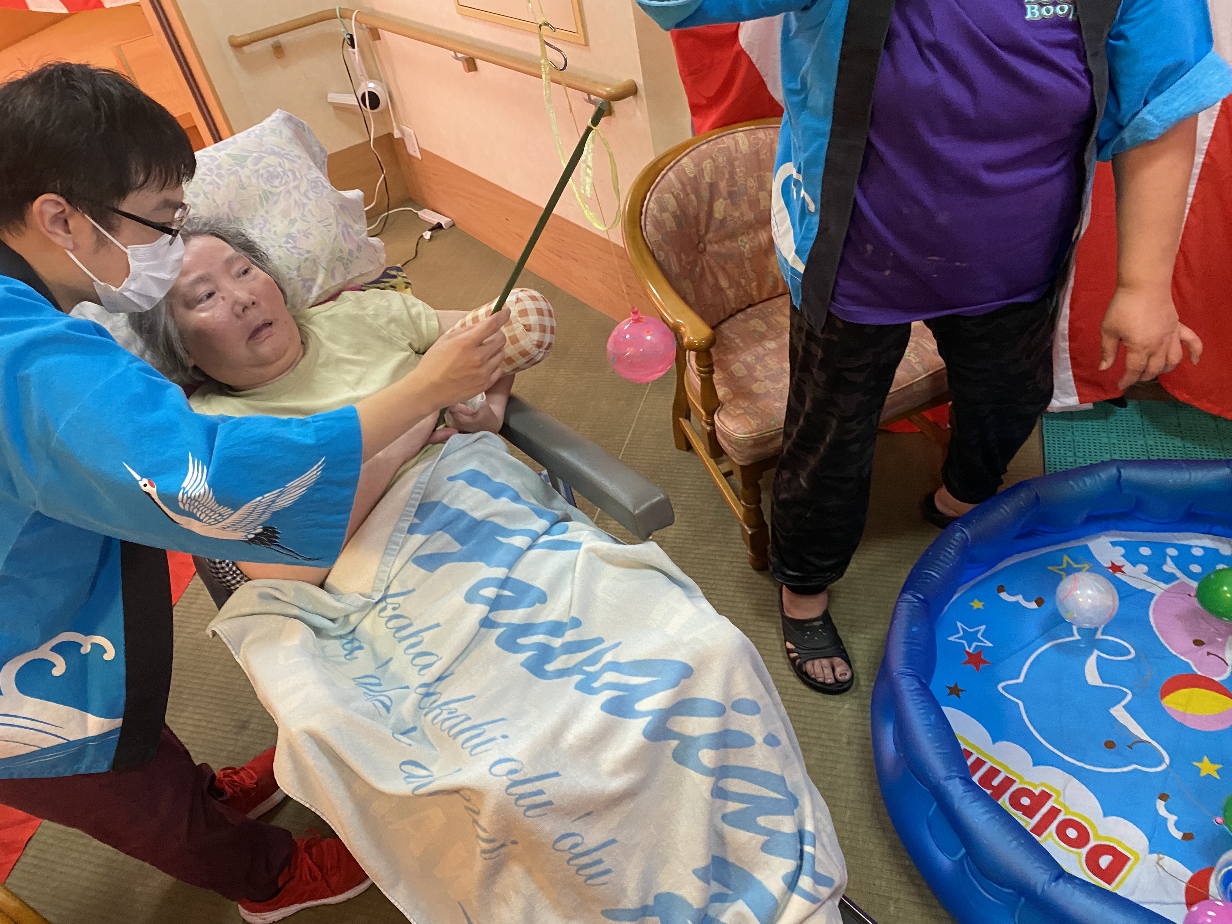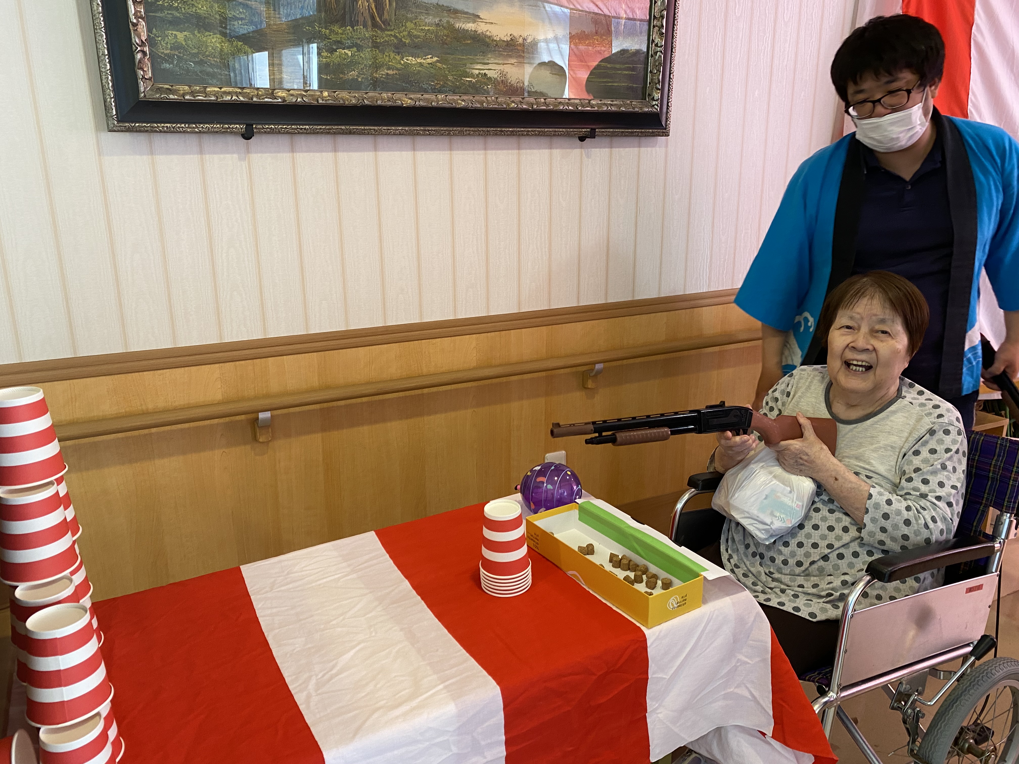 射的、くじ引き、ヨーヨー釣りを用意させて頂き、皆さん歓声をあげたり喜ばれていました。