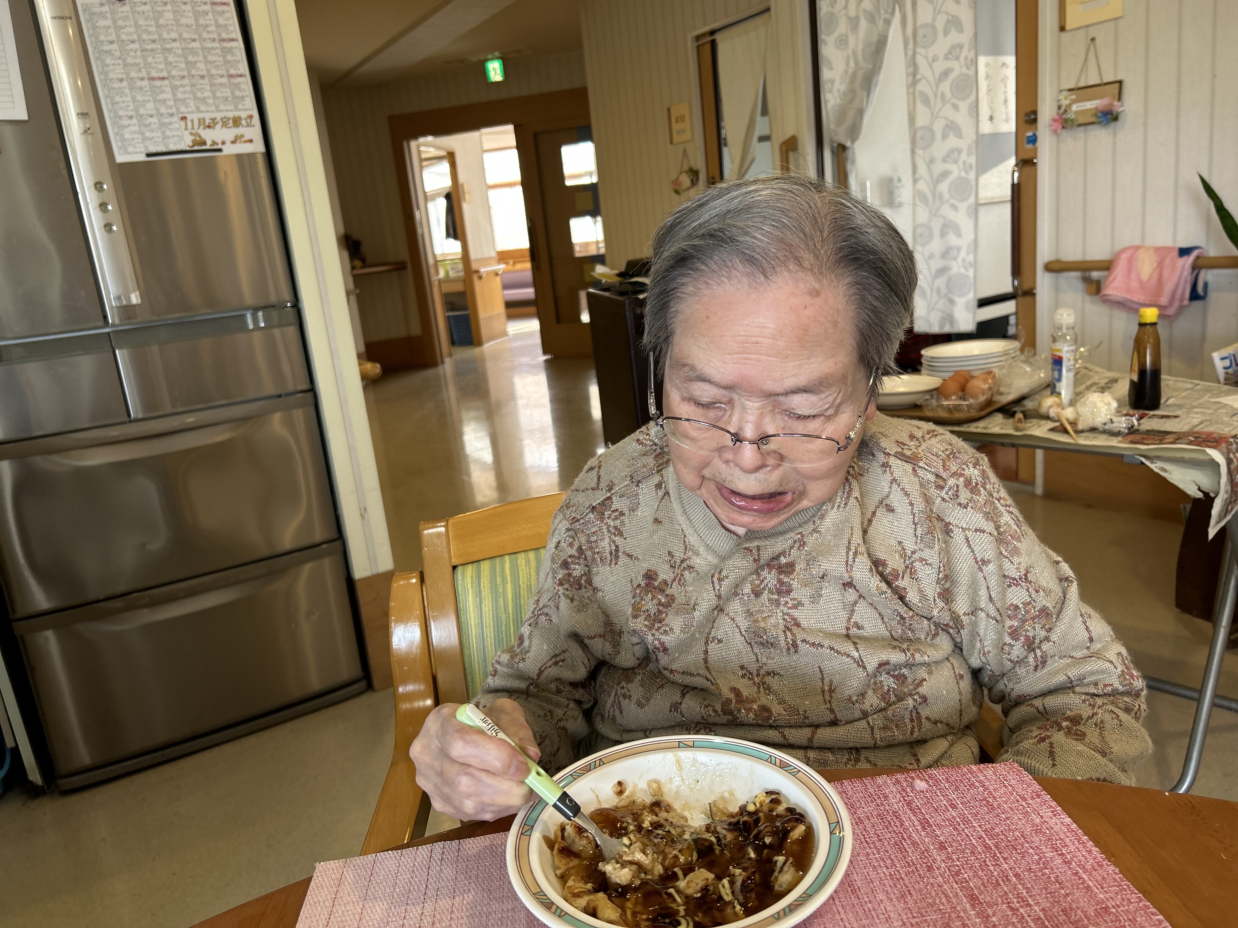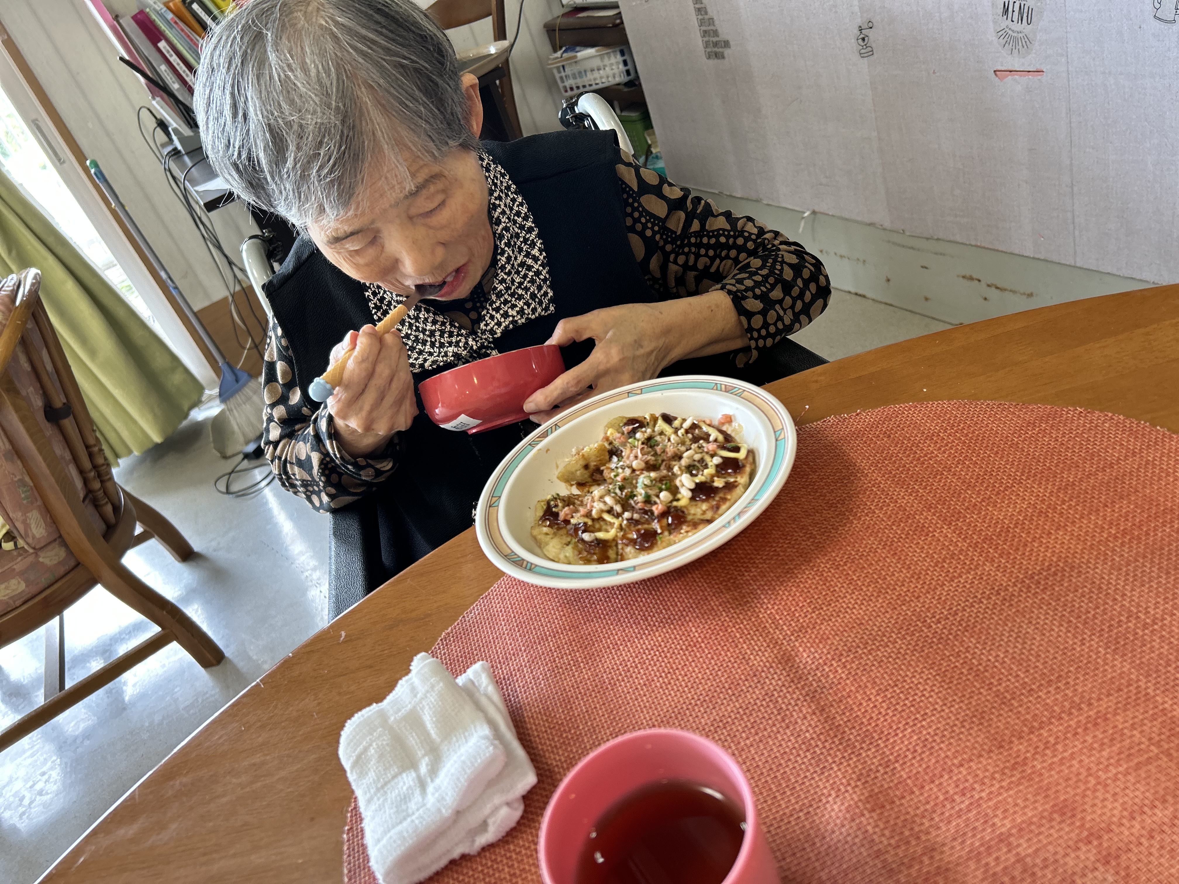 昼食はお好み焼きを作り、おやつにはケーキを食べて頂きました😍