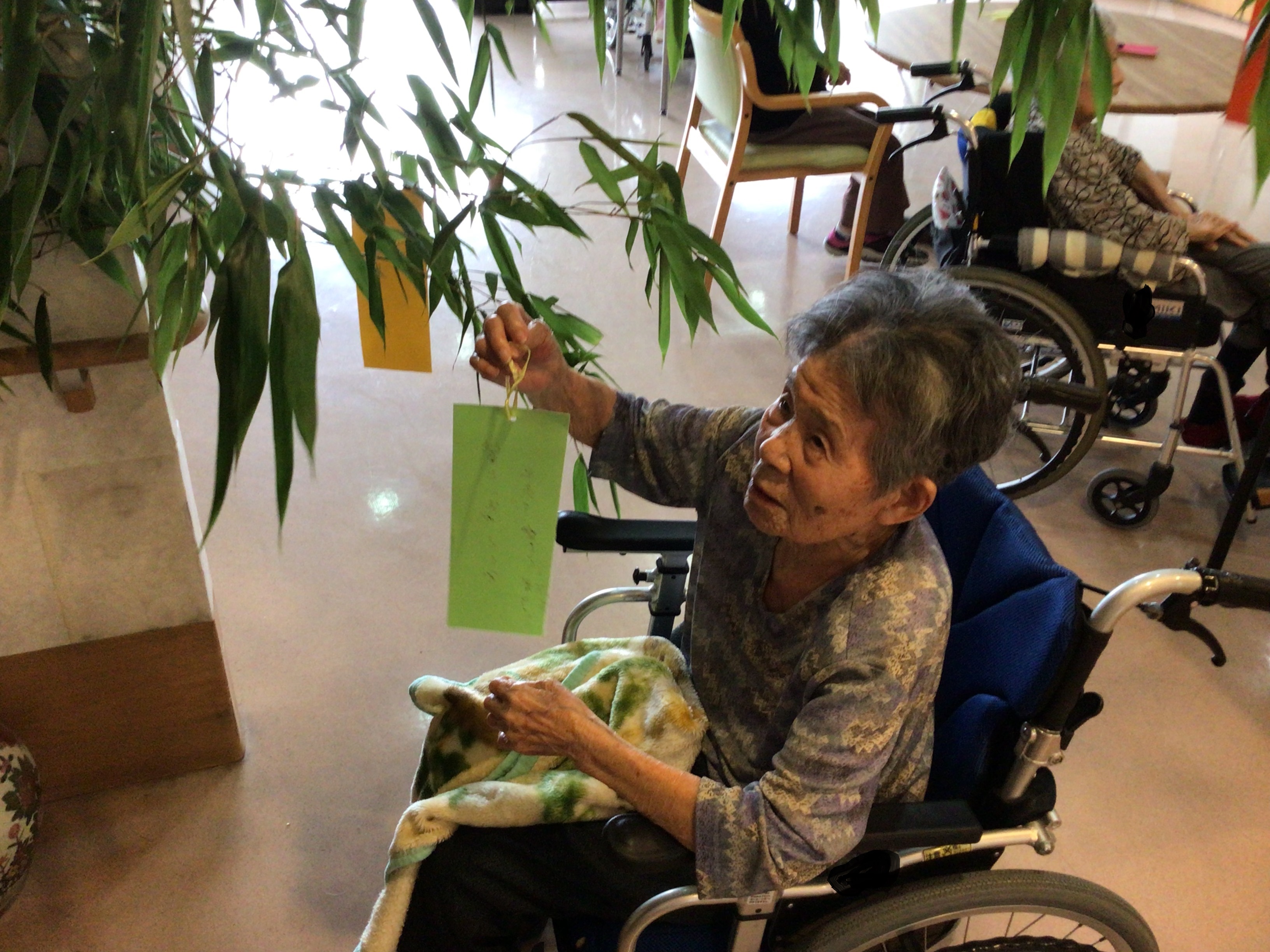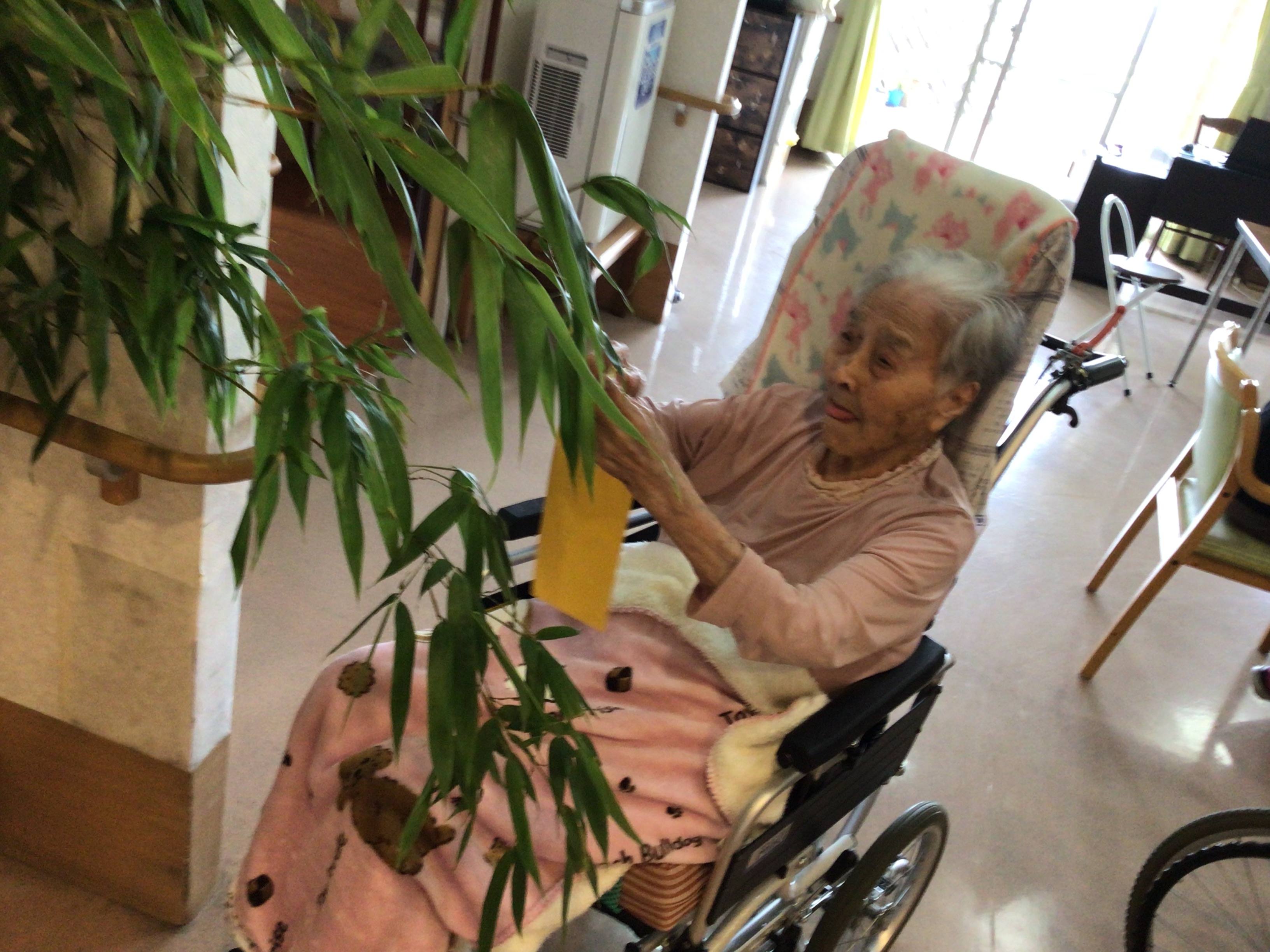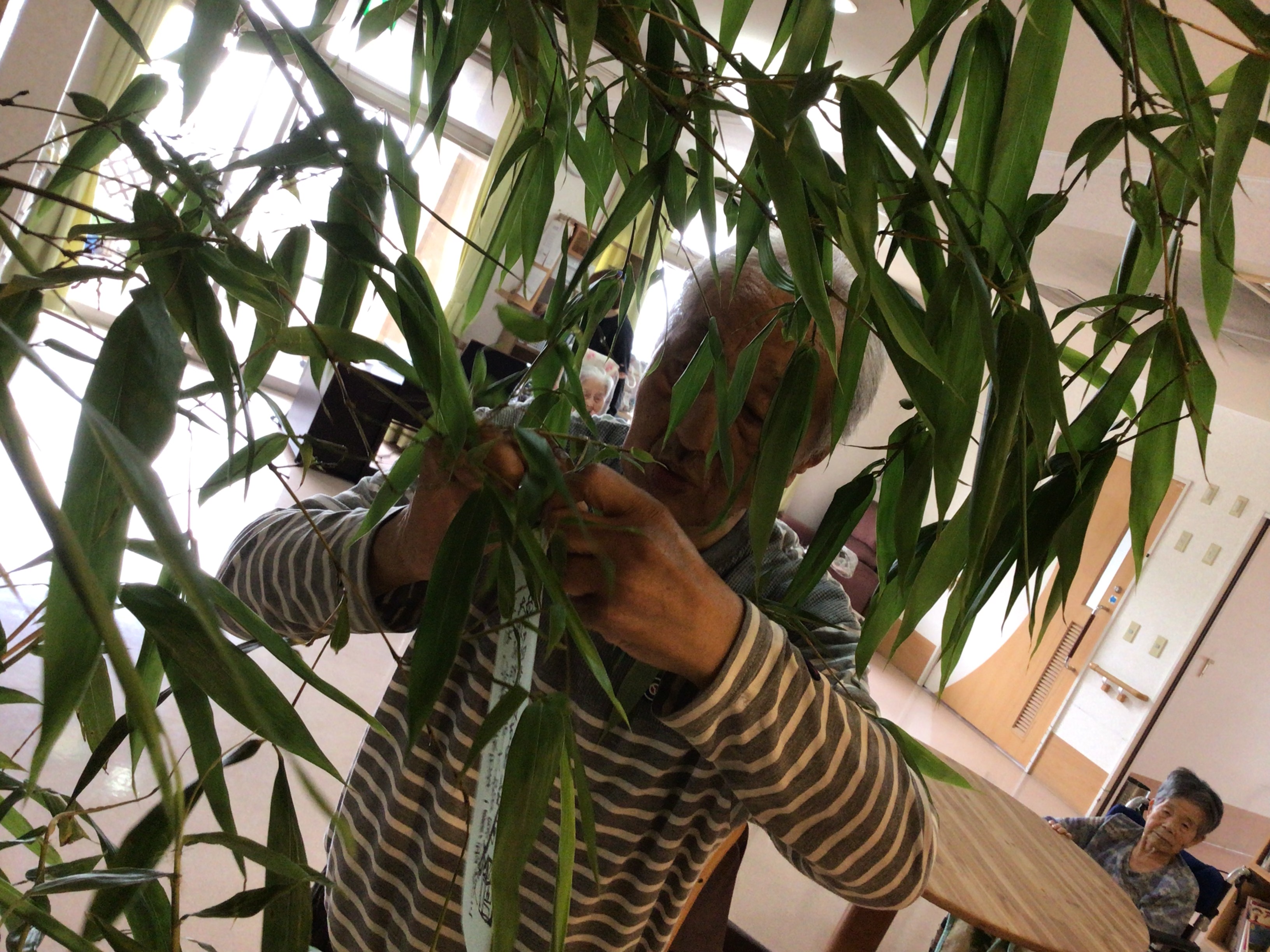 7月は七夕ですね。笹の飾りつけにも精がでます!