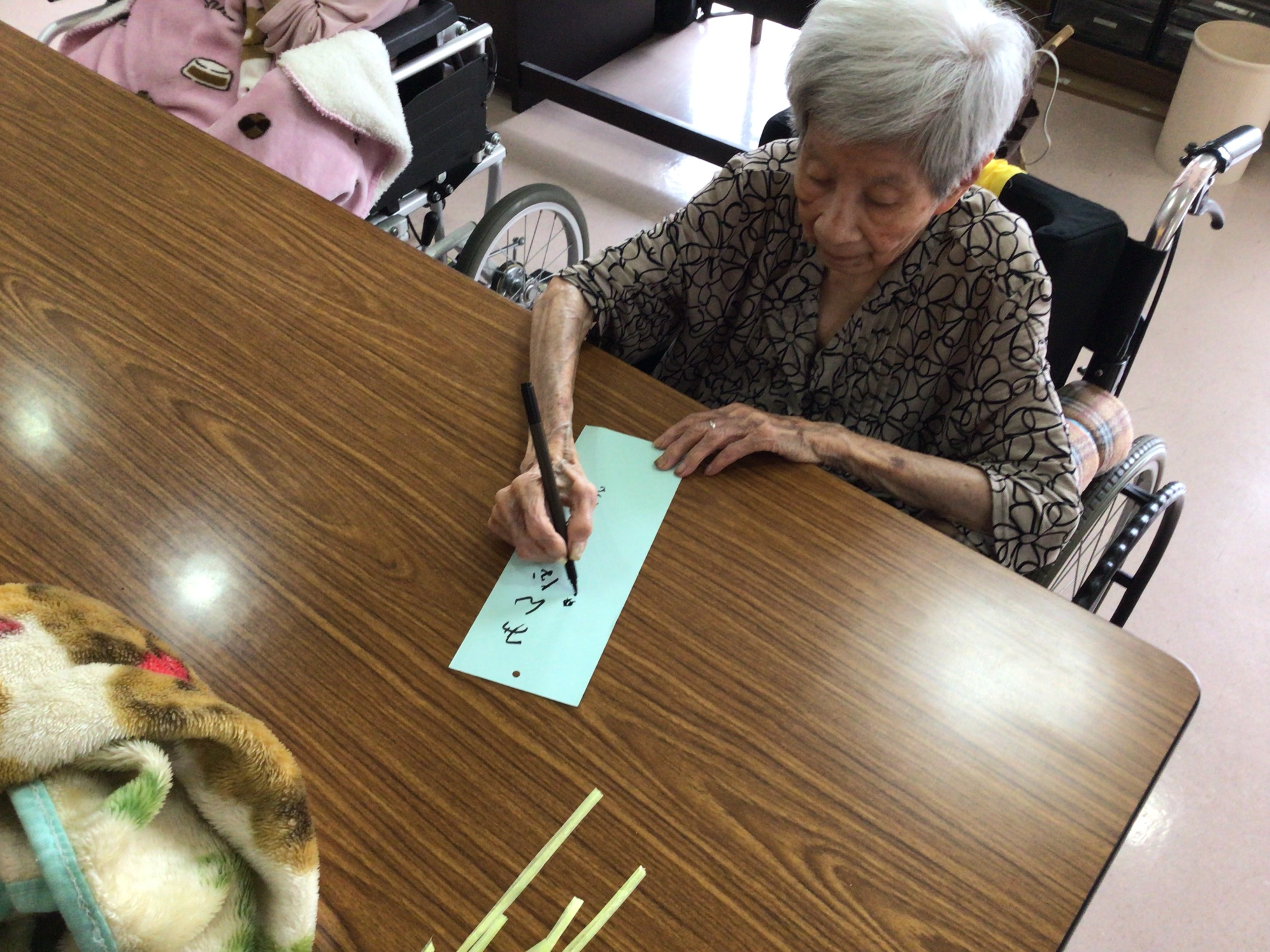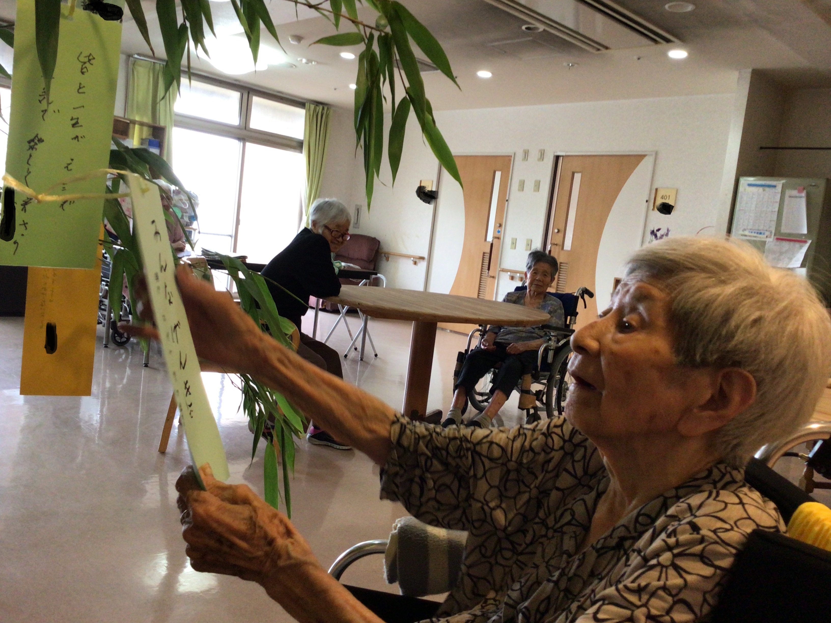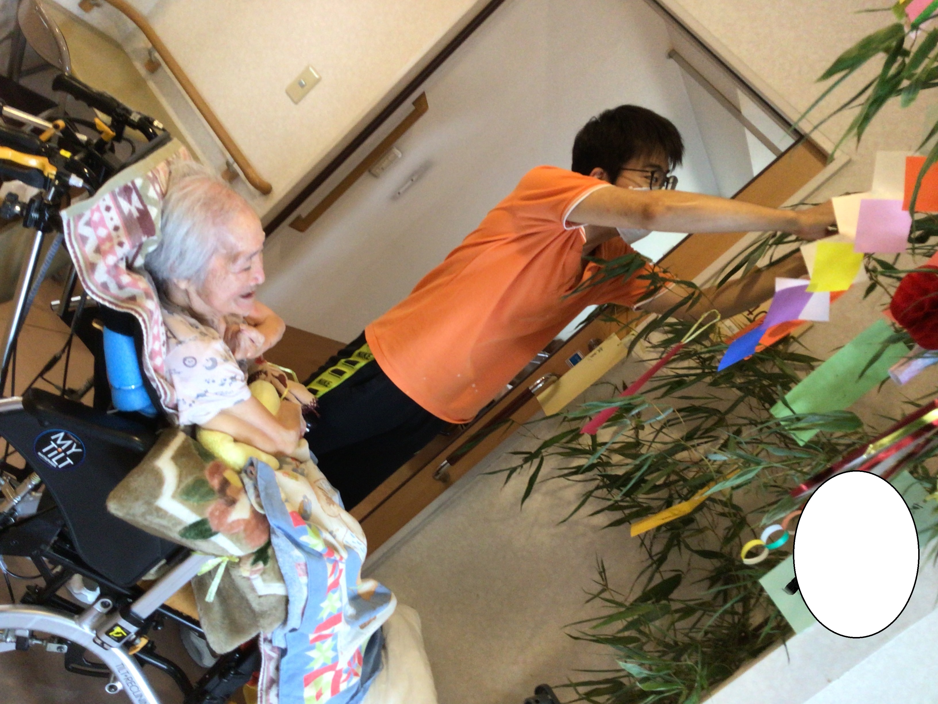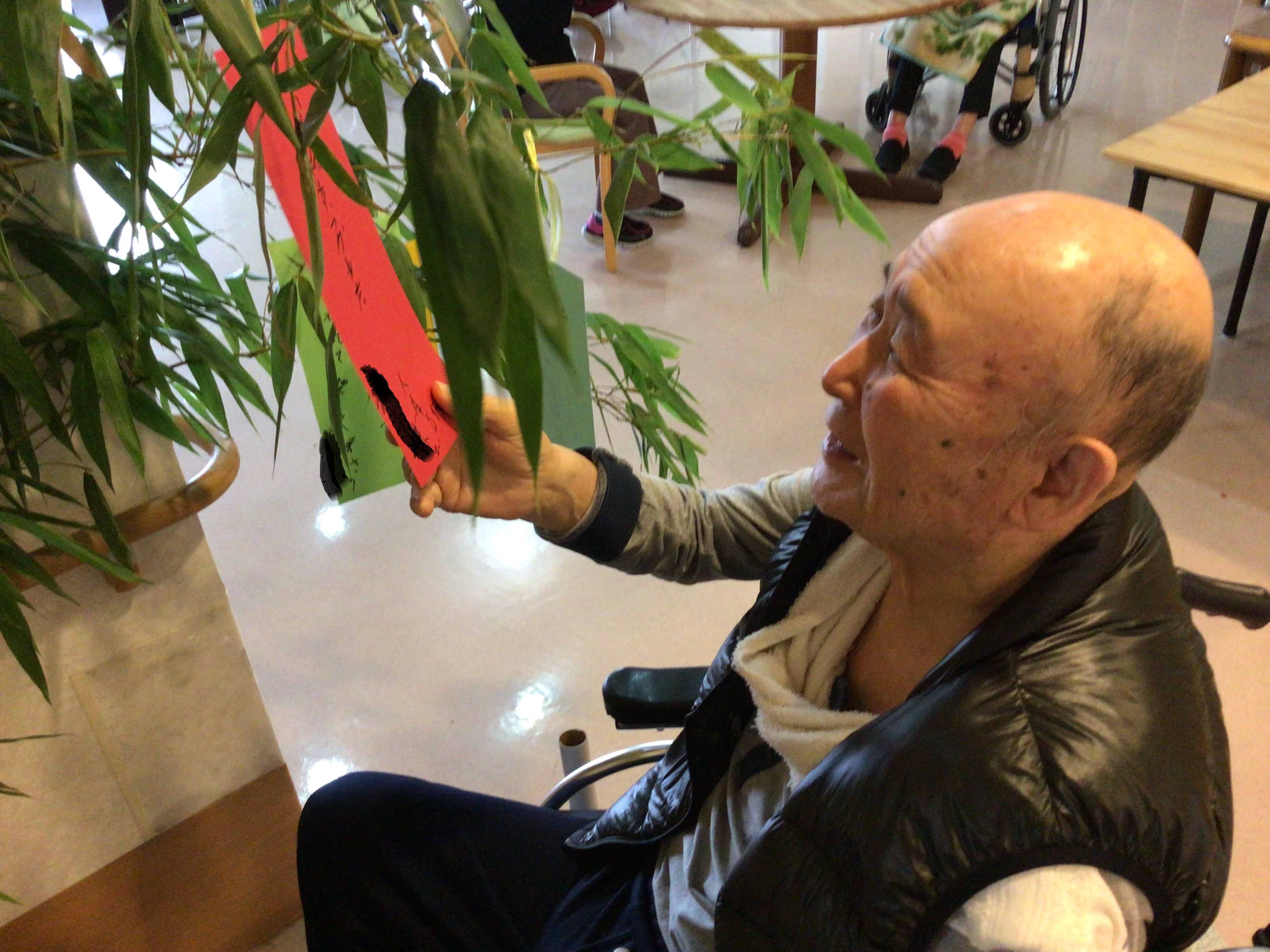 7月は七夕ですね。笹の飾りつけにも精がでます!