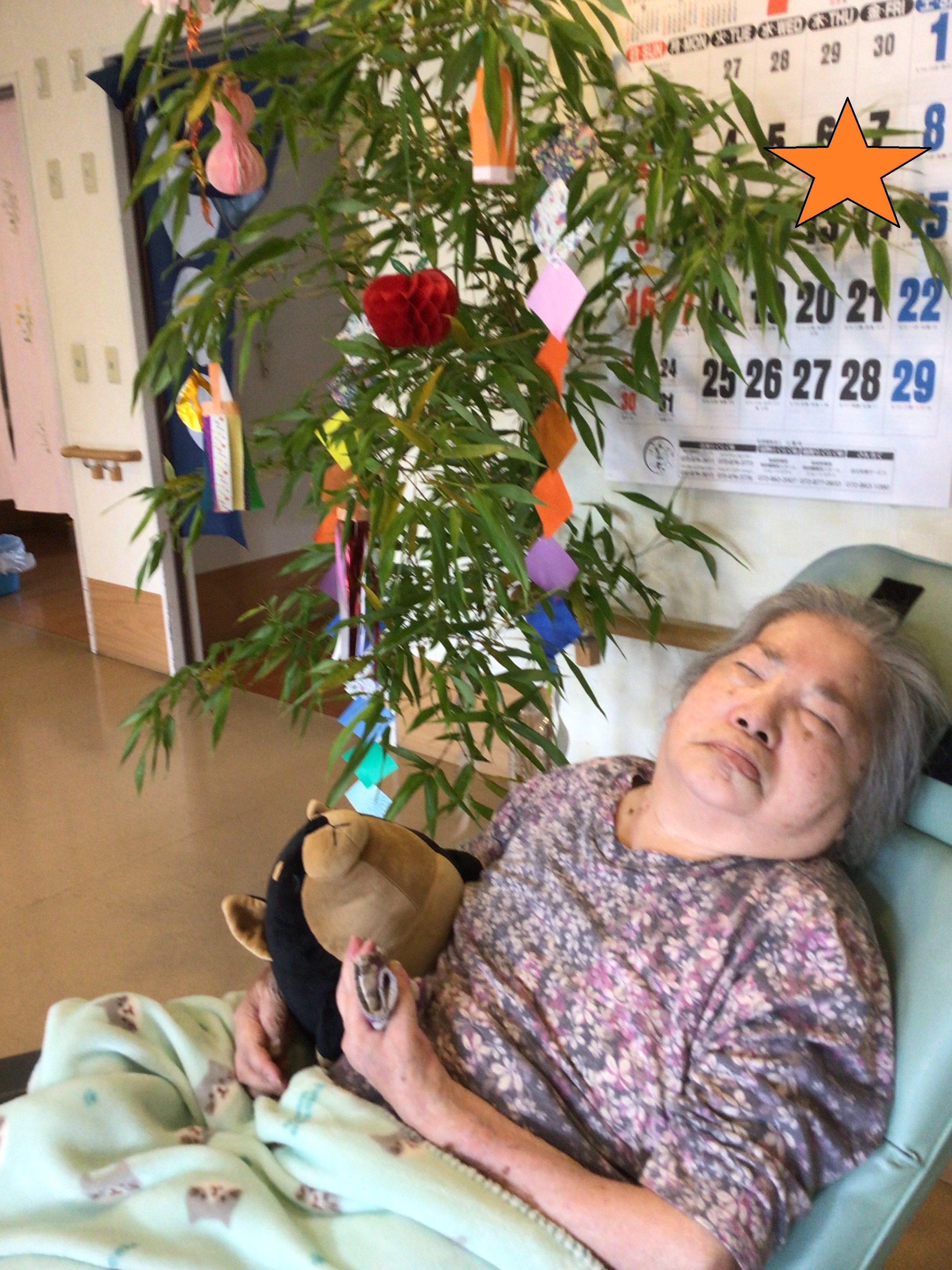 7月は七夕ですね、胃ろうユニットにも笹などを飾らせていただきました☆