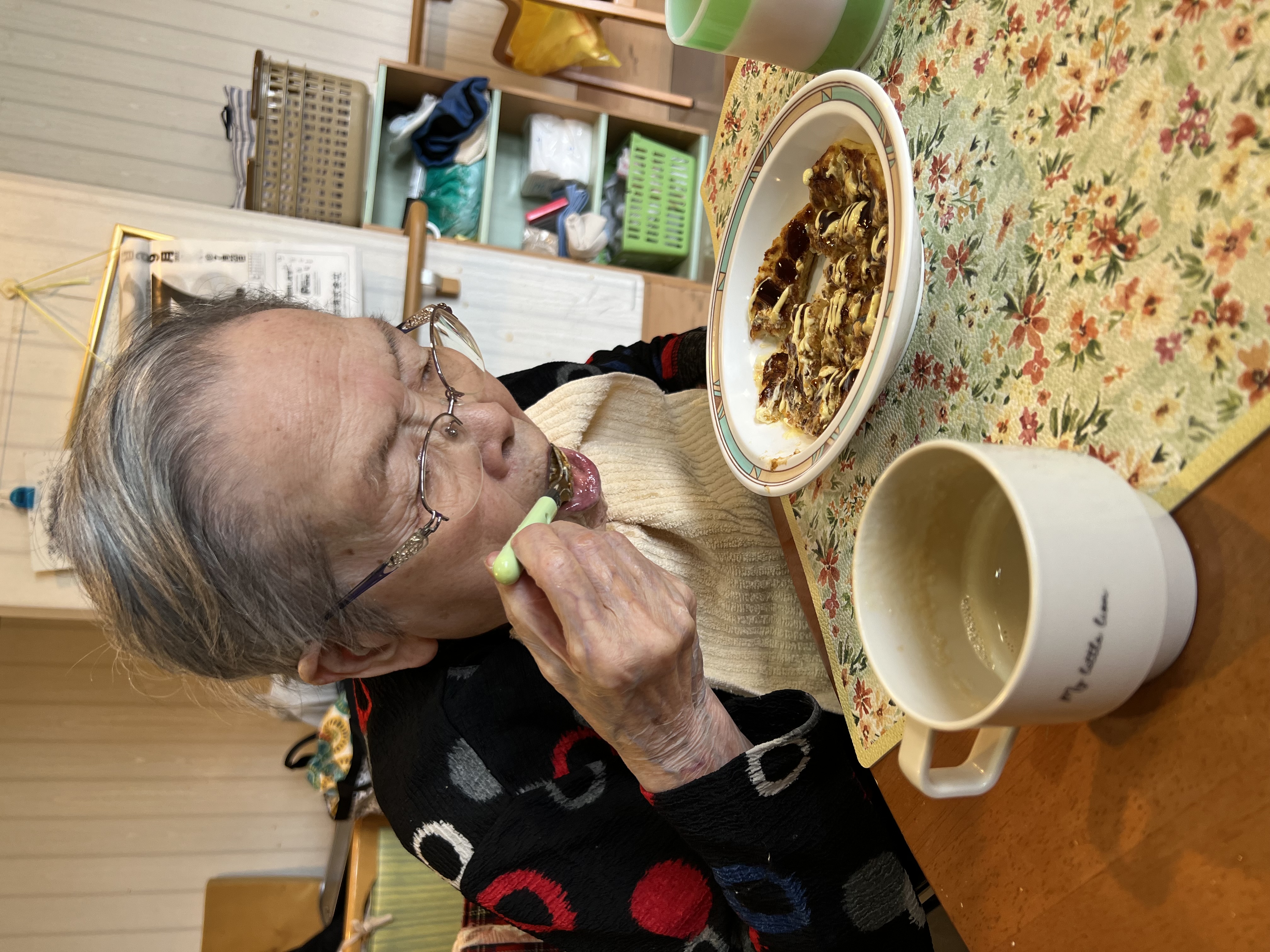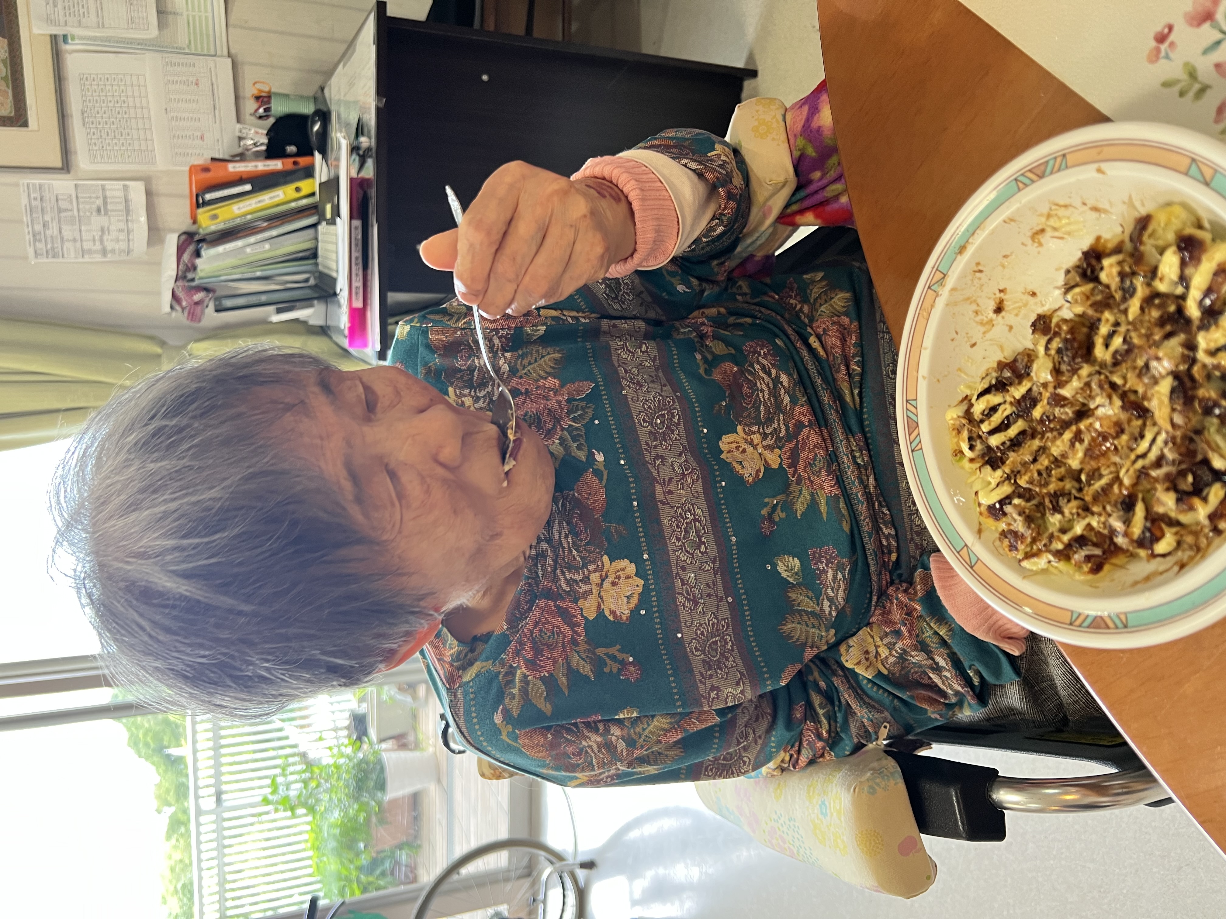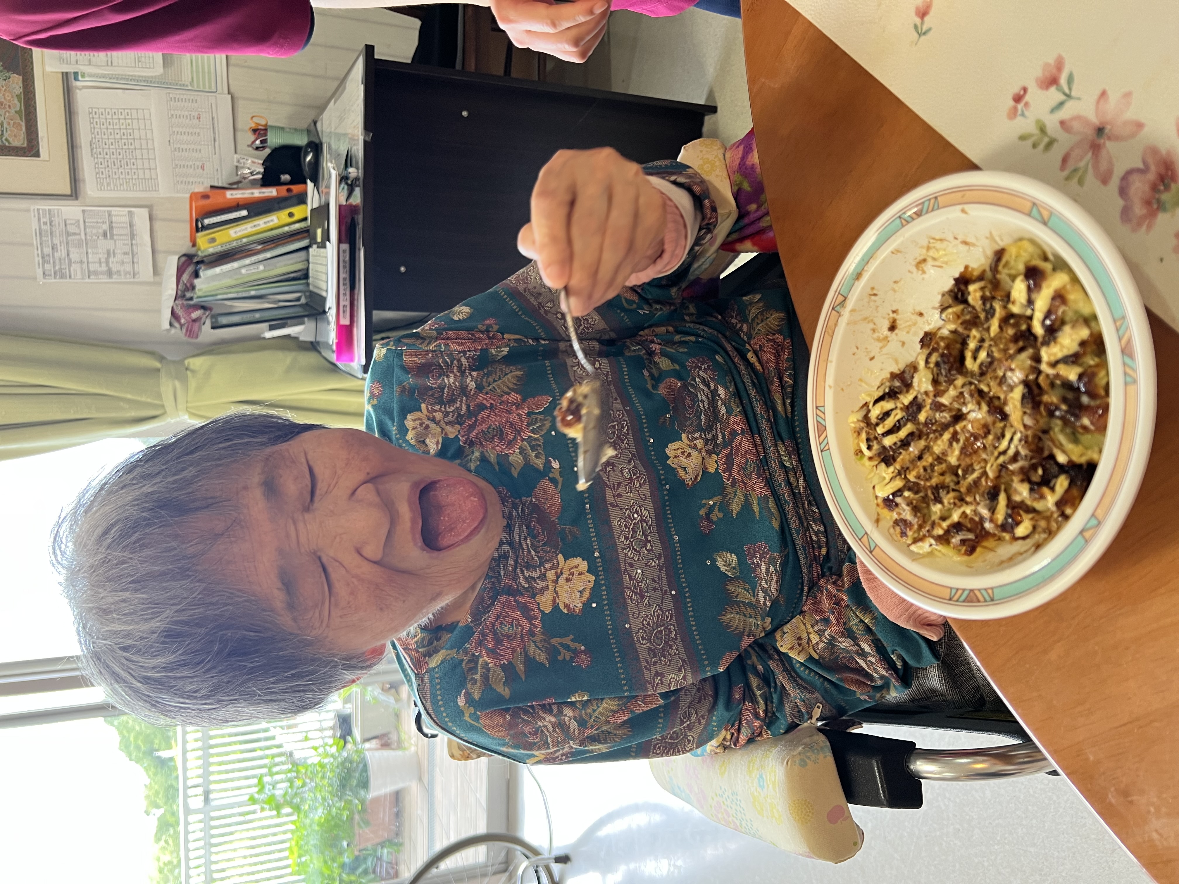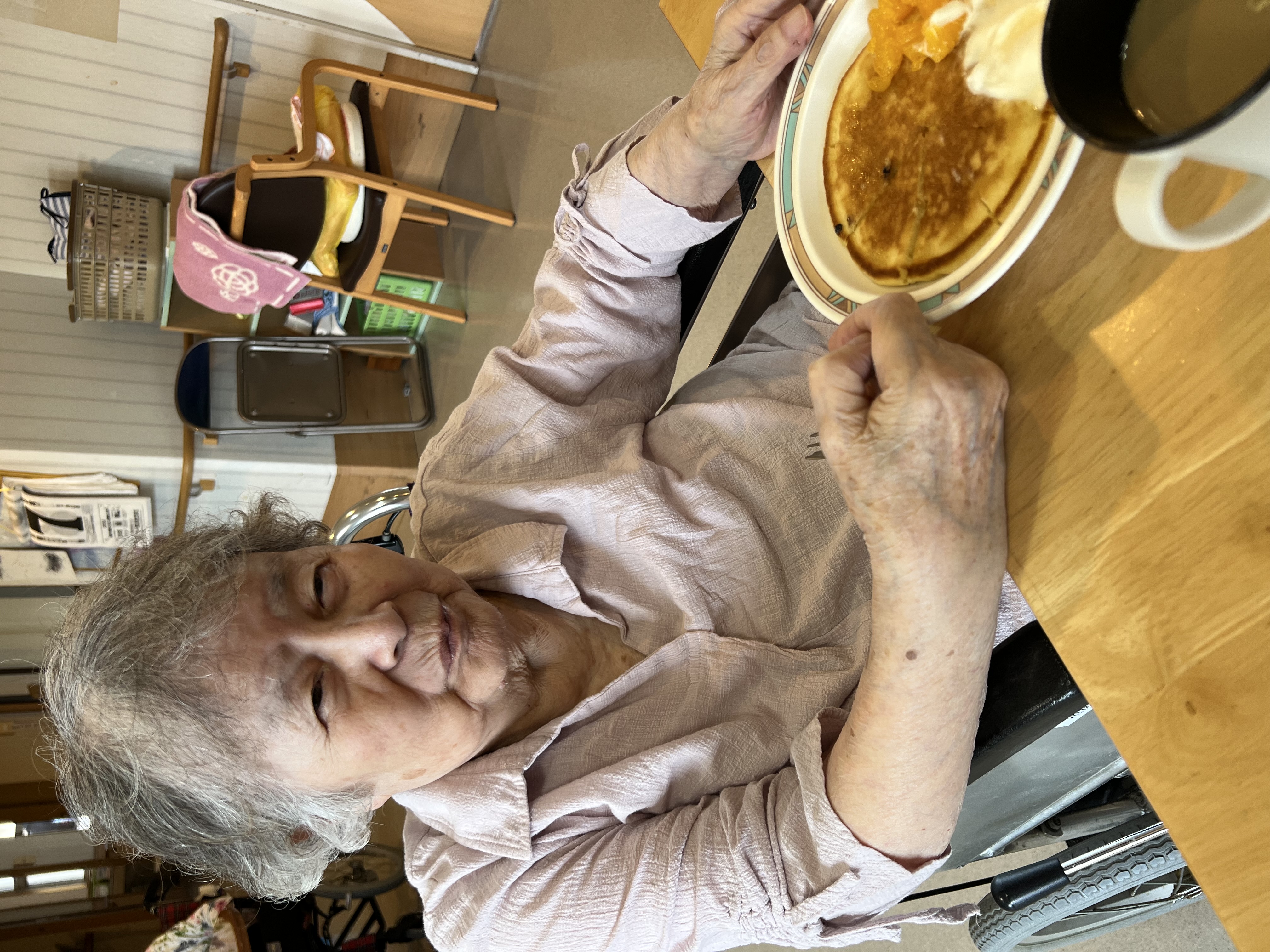 昼食にお好み焼き、おやつにホットケーキを作りました😆粉もんです(笑)普段苑ではあまり食べる事がないので「おいしい」とおかわりをしてくださったり、普段あまり食べられない方でもたくさん食べていただけてとっても嬉しかったです!お誕生日おめでとうございます🍰💐
