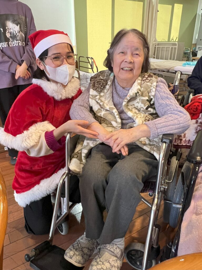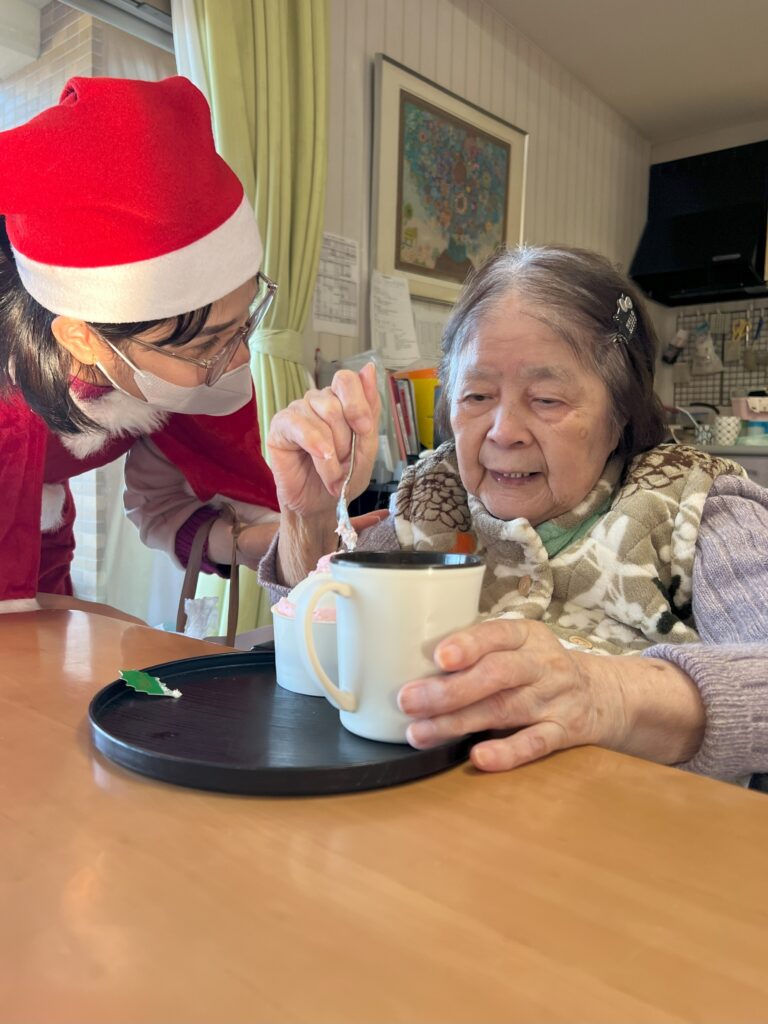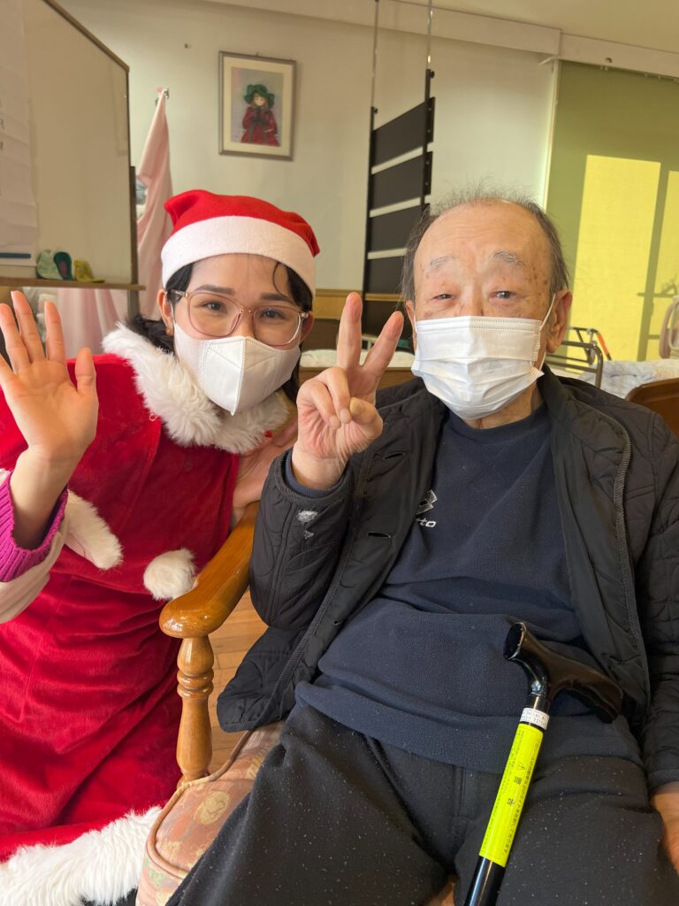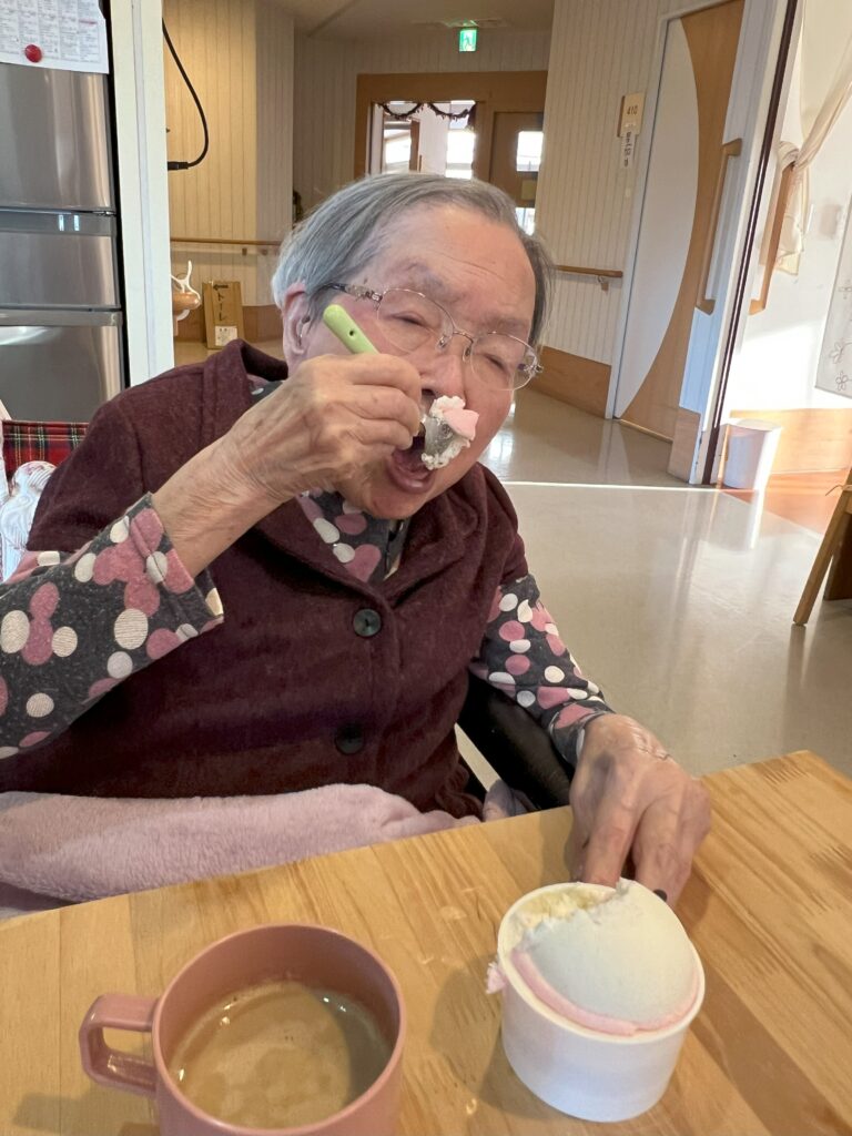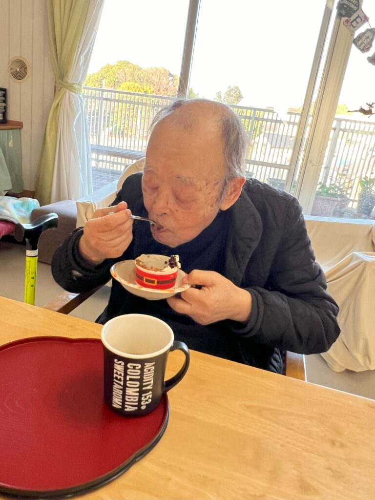 カラオケをしてクリスマスプレゼントをお渡しして、かわいいクリスマスケーキを食べていただきました🎂みなさんケーキを夢中で食べておられました!