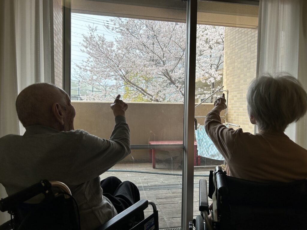ユニット内からも近くで桜が見えるよ~と教えてくれたお二人。
