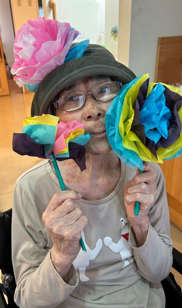 入居者様と一緒にお花を作ってみました(^O^)🎵