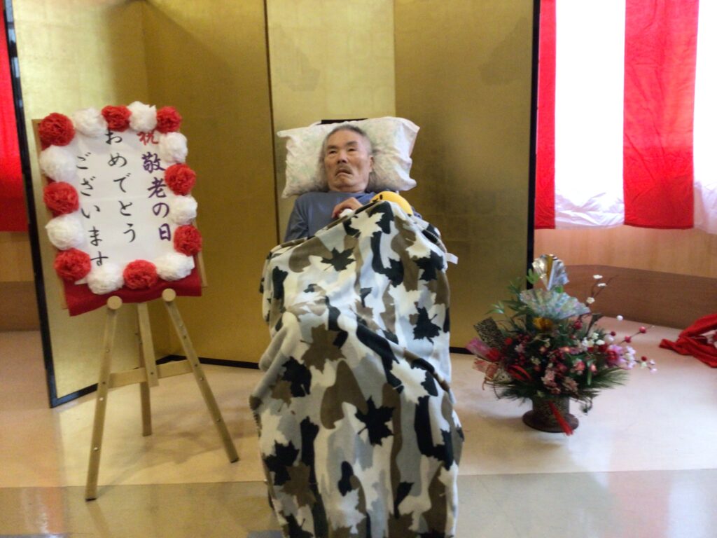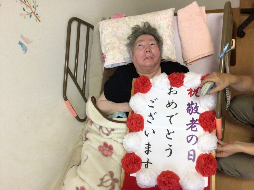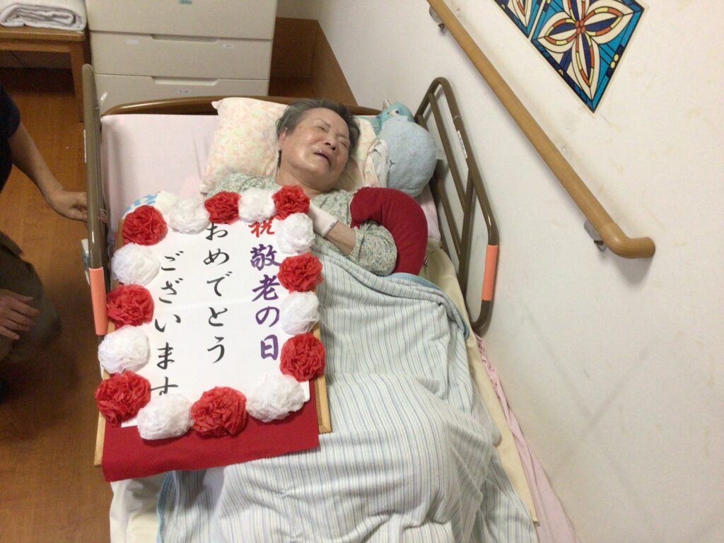 食事の時間等を考慮して、ベッドのままの人が多いですが 声掛けには反応されたりはして下さいました。