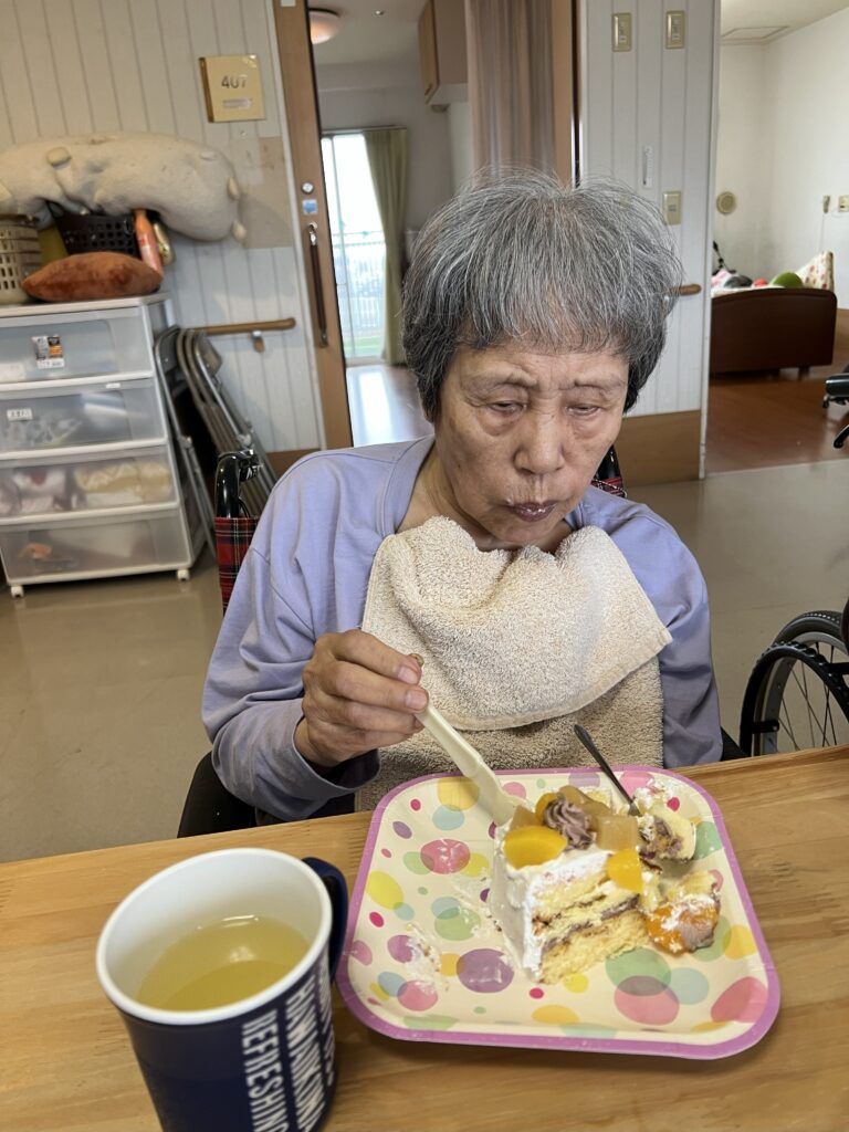 10月はお誕生日の方が2名おられたのでおやつにケーキをたべていただきました💐🎂