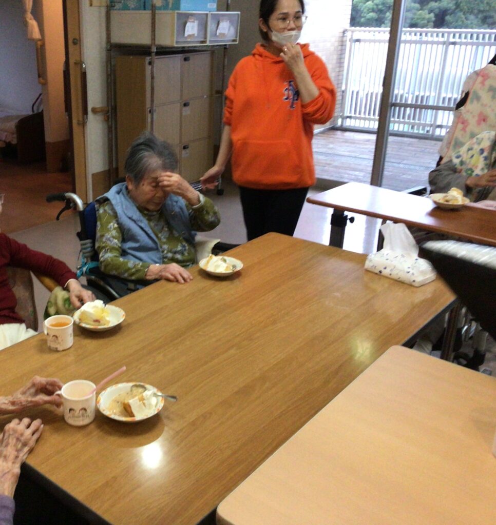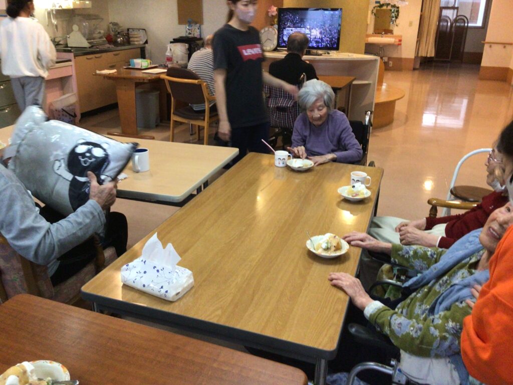 ここからはおやつの時の様子があります。本日誕生日の方がおりましておやつに