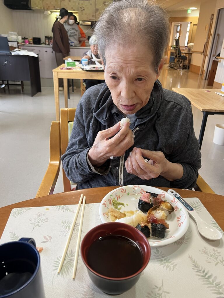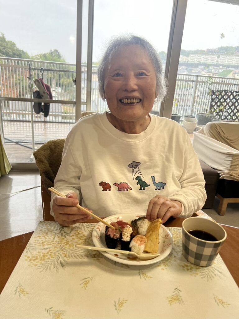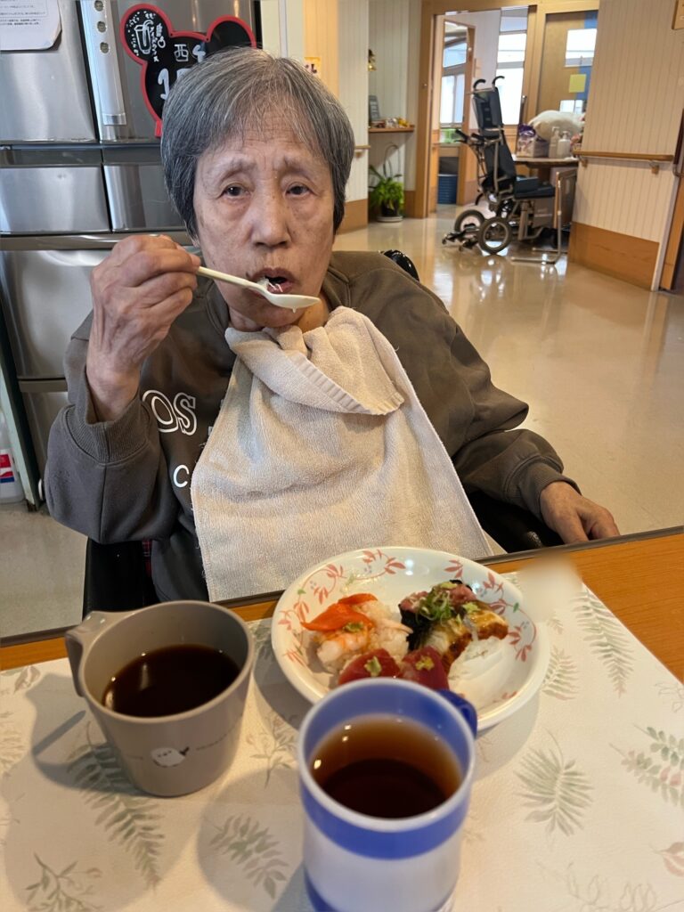 昼食行事でお寿司を頼み食べて頂きました🥰🥰