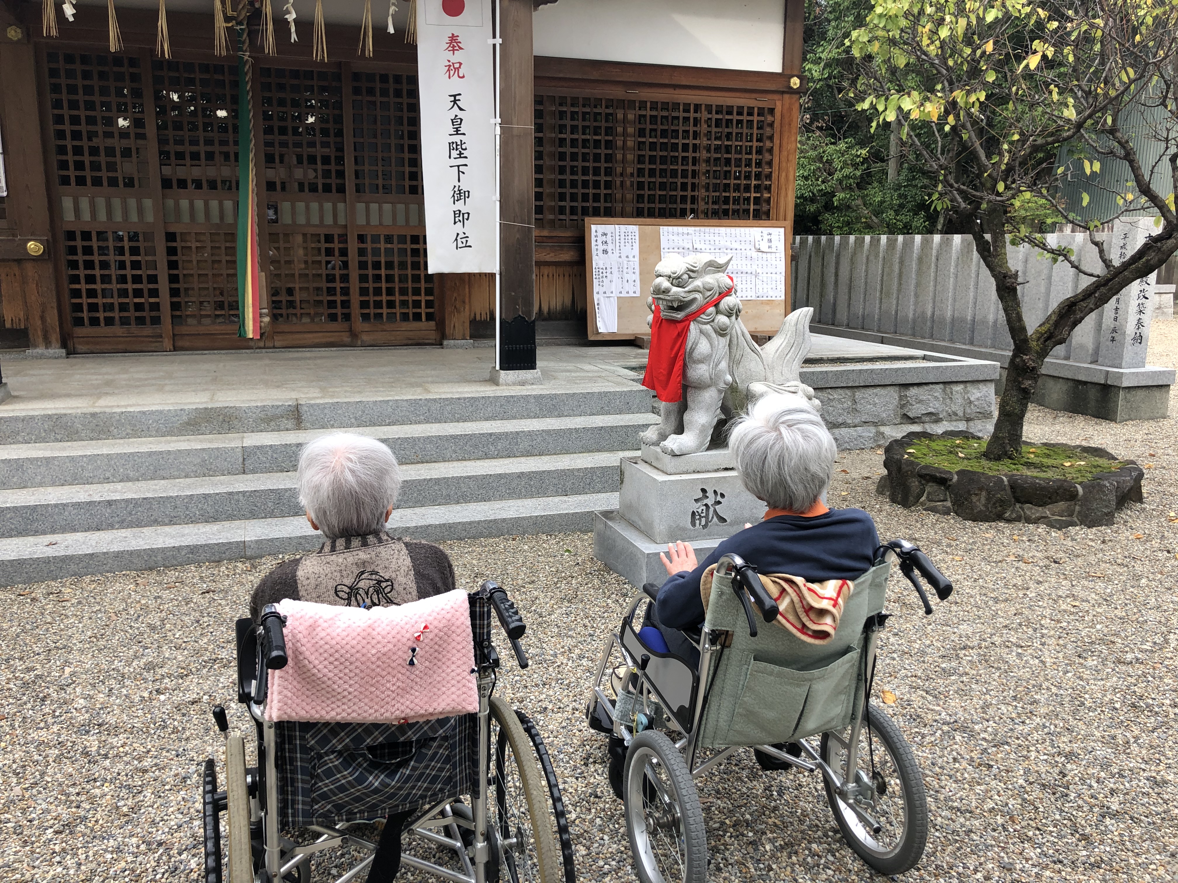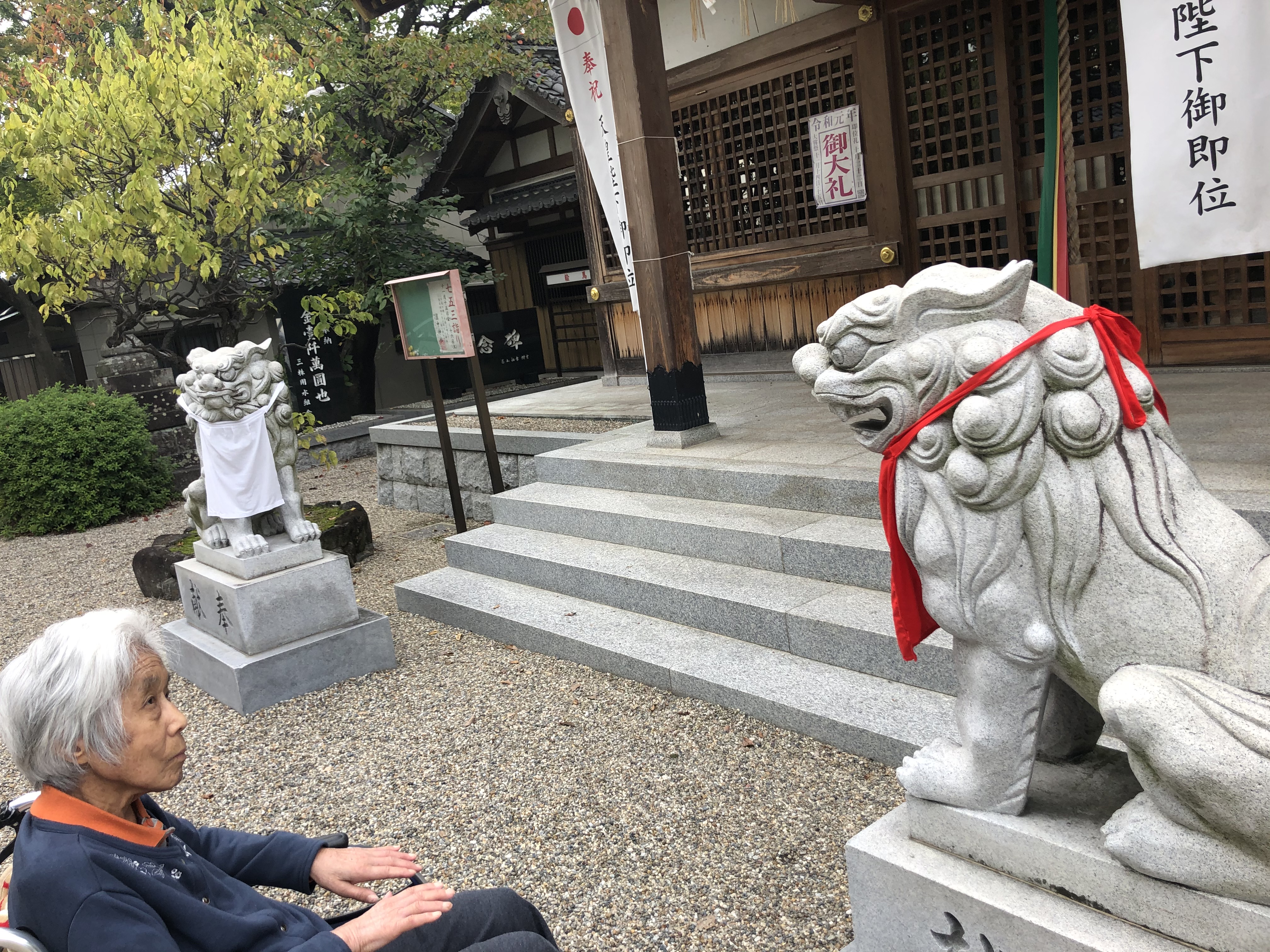 狛犬を見て、「顔がこわい」と言い笑われるなど散歩を楽しまれました(*^_^*)
