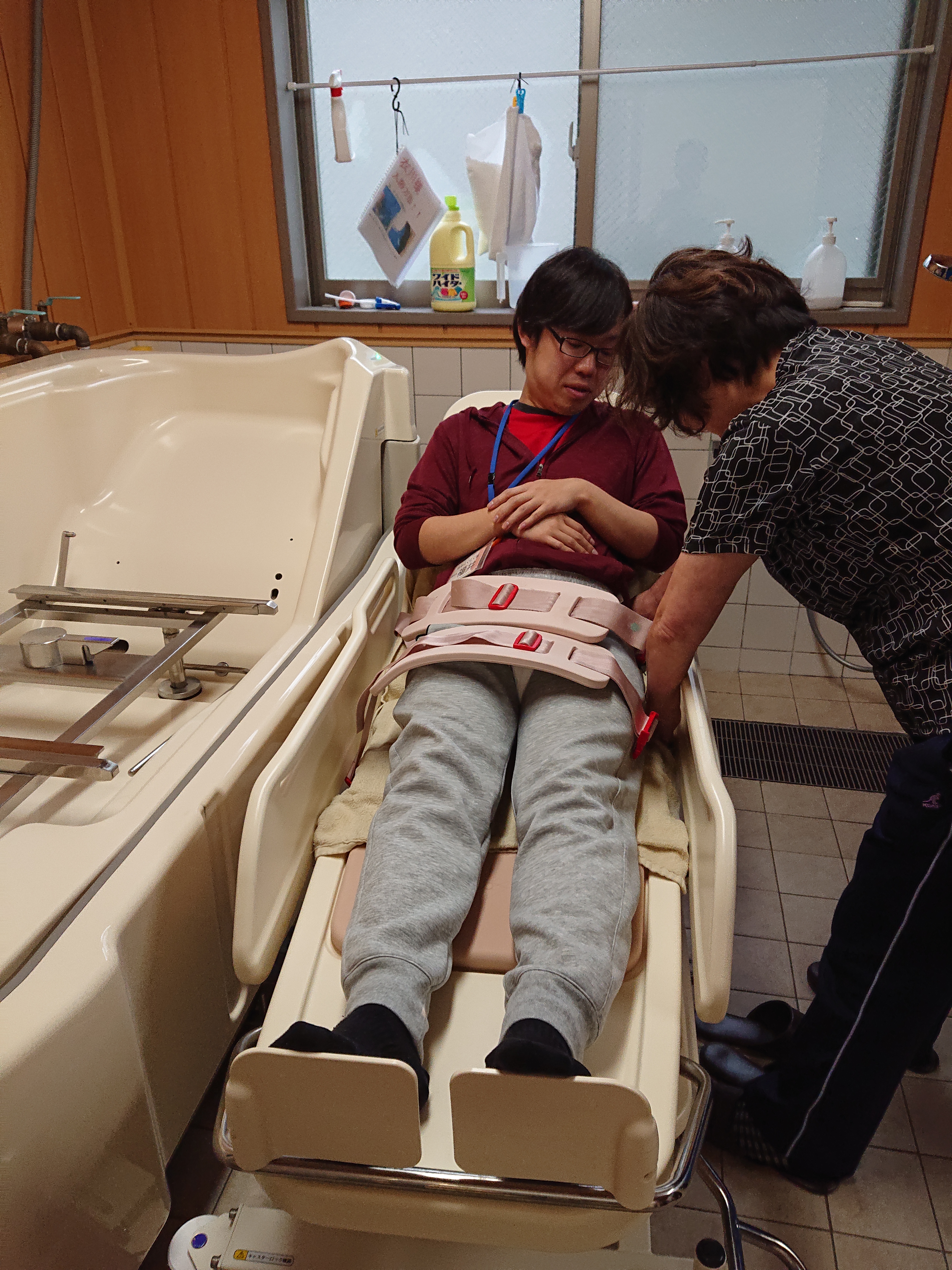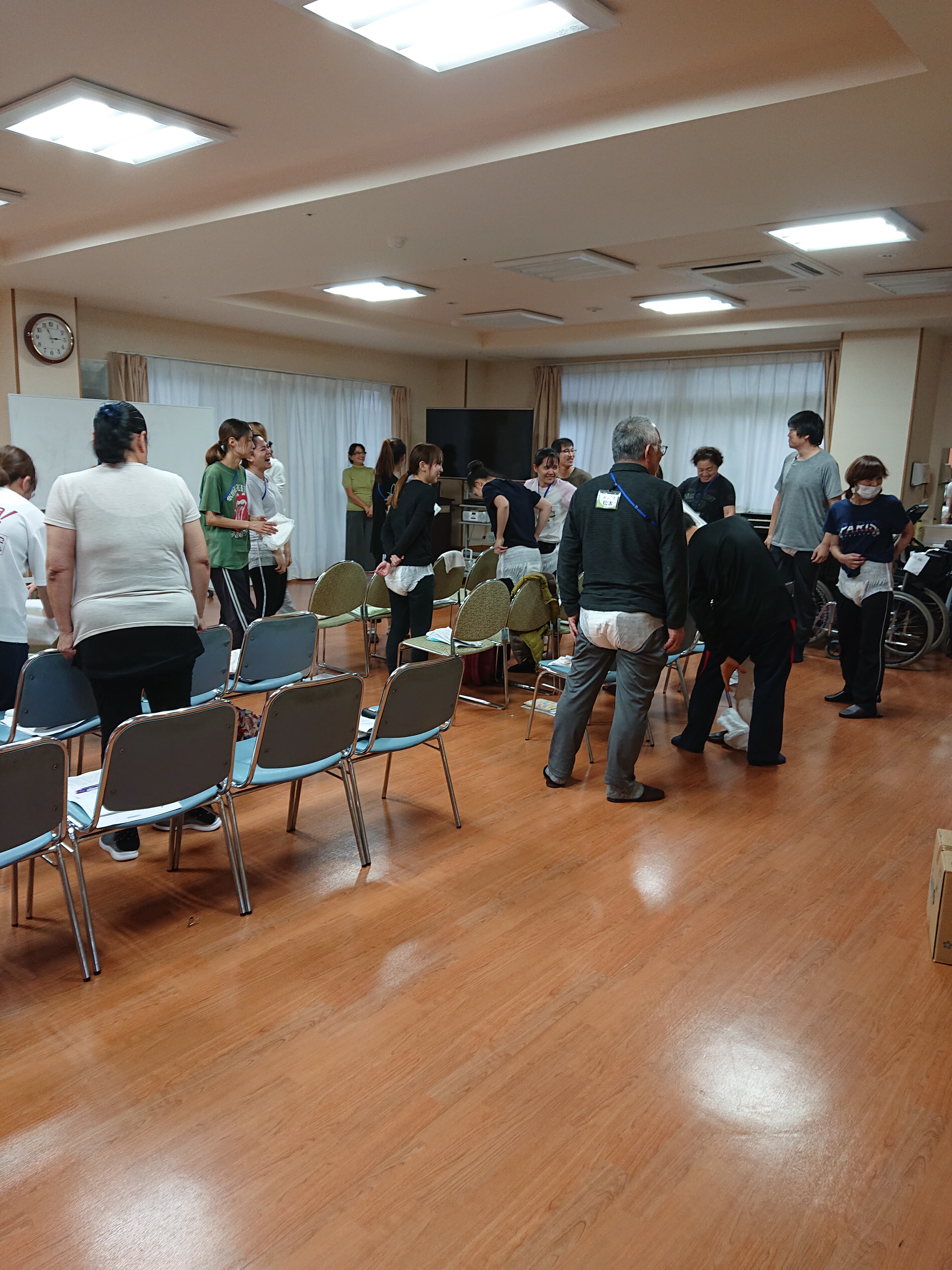 実際に排泄・入浴介助をされる側(入居者様)の気持ちや不安などが少しわかったとの意見もあり、 充実した研修になりました。