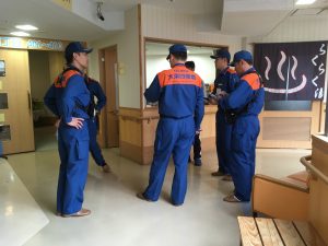 今回は夜間を想定し、限られた人数で通報や避難誘導を行う訓練でした。