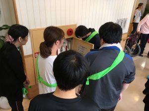 今日は大東四條畷消防組合から消防職員の皆さんに立ち会っていただき、避難訓練を実施しました。