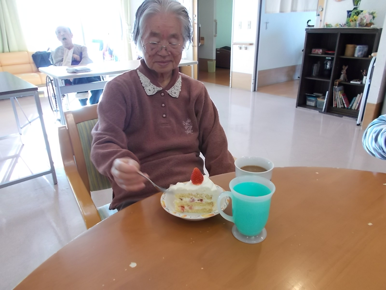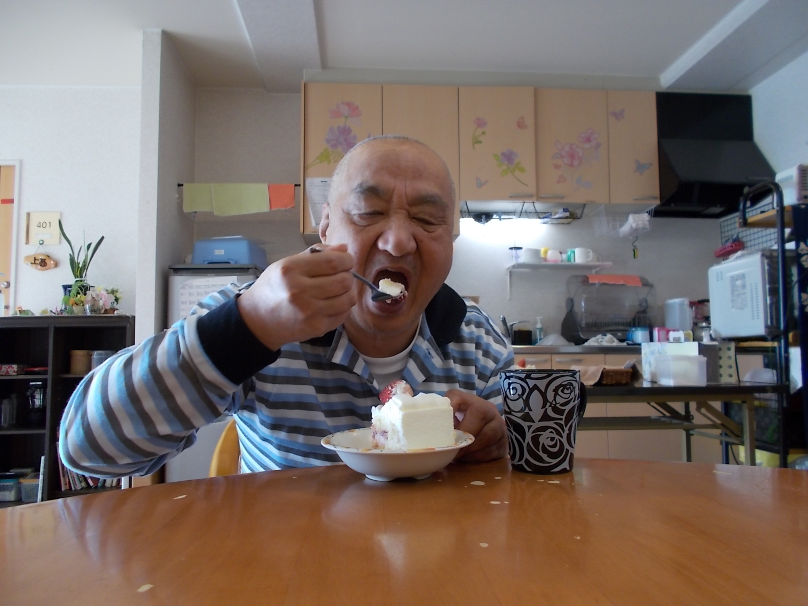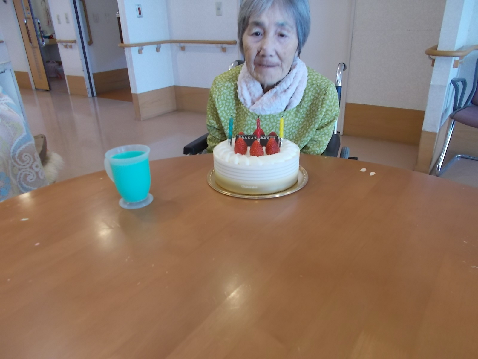 今回の主役です!! ユニットに誕生日を迎えられた方のお祝いを利用者皆様とユニット職員でお祝いをしました。ケーキを美味しく食べられ、プレゼントも大変喜んで頂く事ができました。来月にも誕生日を迎える利用者がおられ、その時にはケーキを手作りする予定となっておりその時の様子もブログにアップする予定となっております。