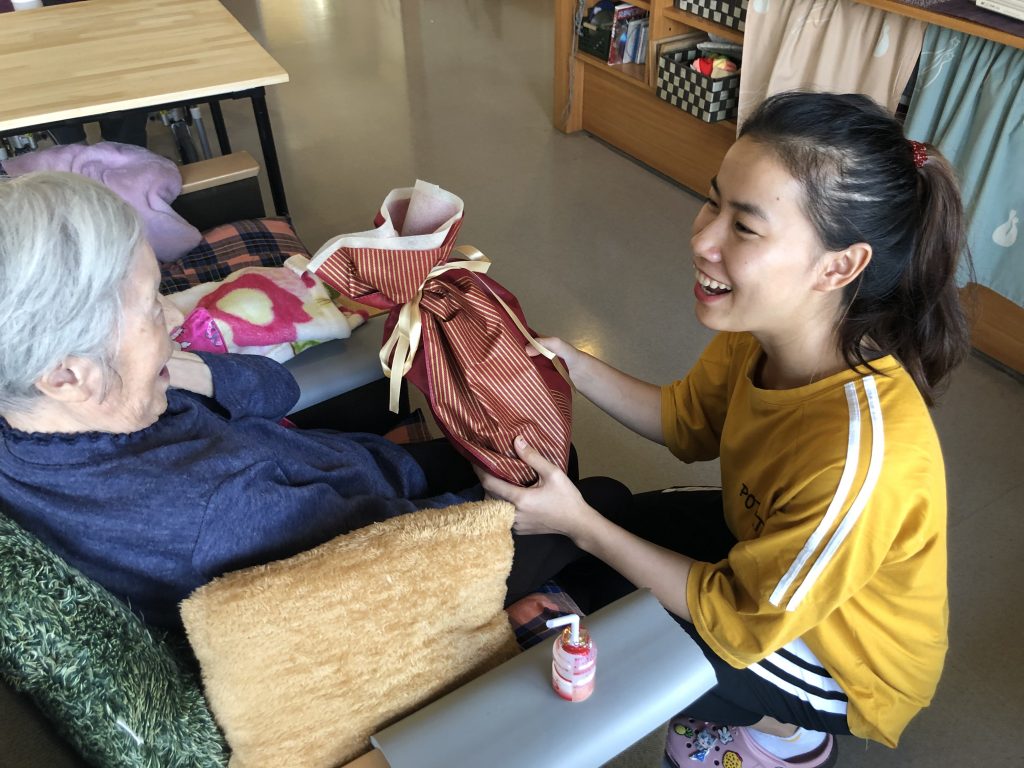 帰苑後に、職員からプレゼントを渡しました(^○^)