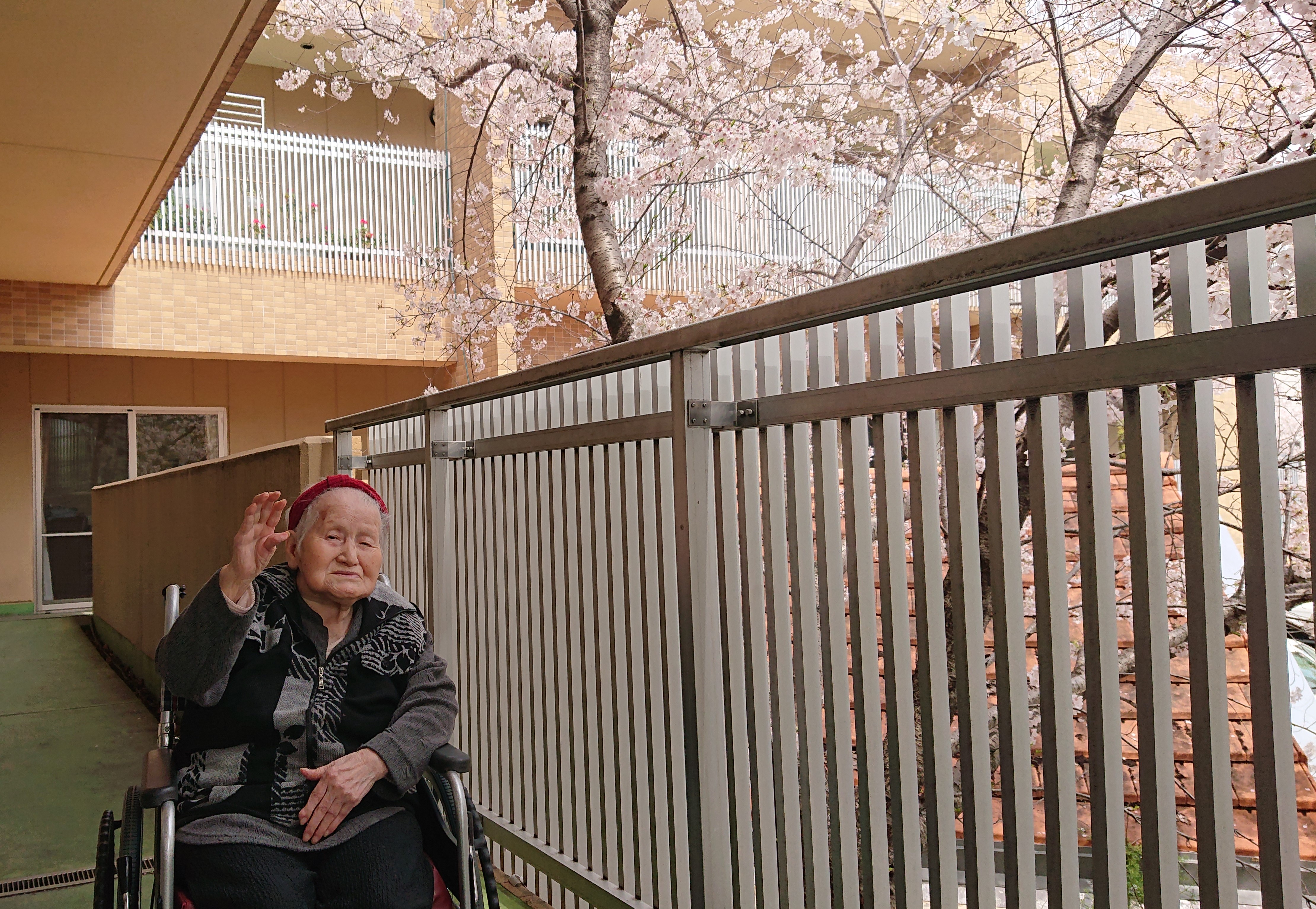 清滝らくらく苑の玄関前に植えられている桜の木が、
