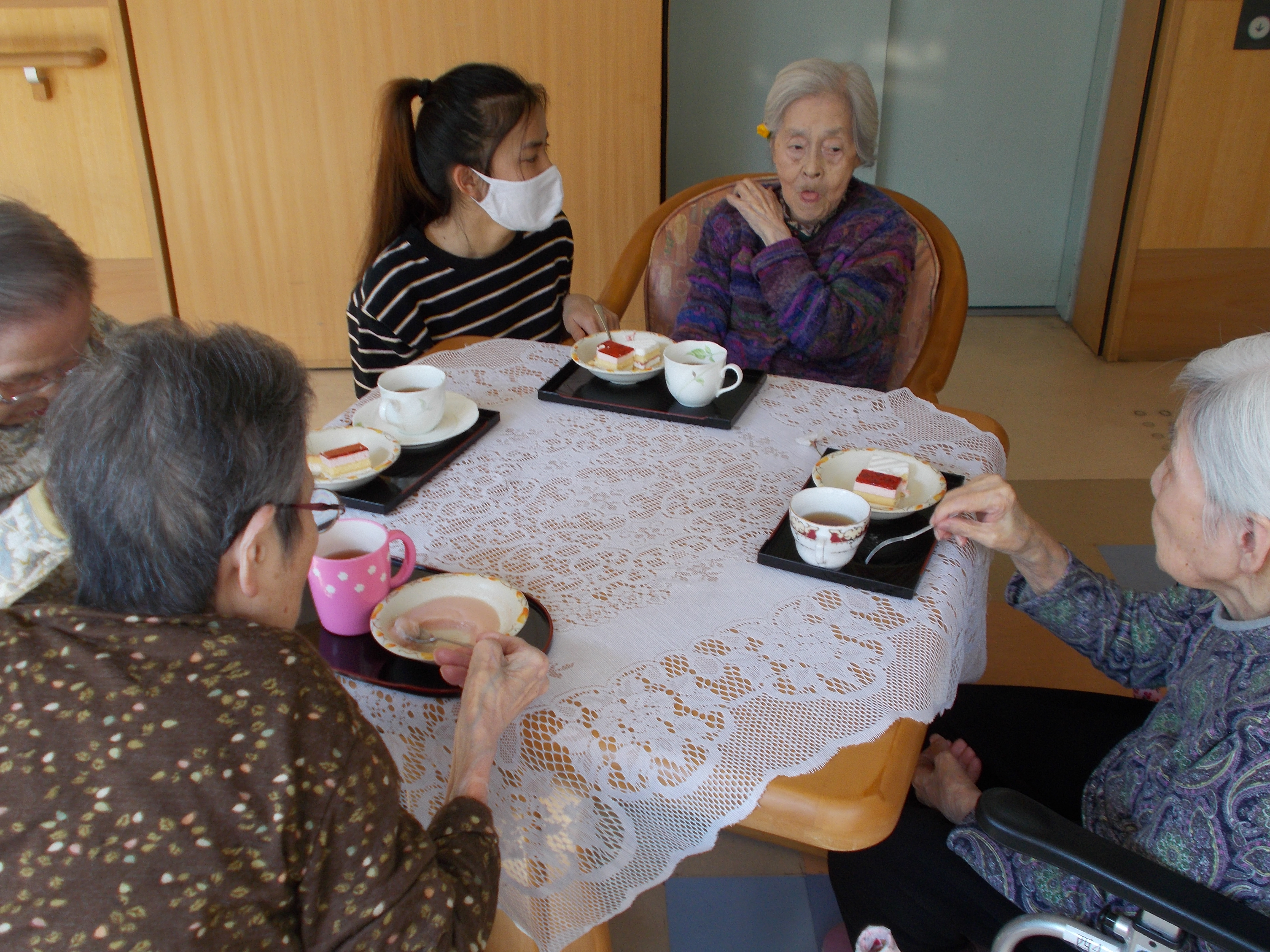美味しそうなケーキを皆様で一緒に桜を見ながら食べました(*^-^*)