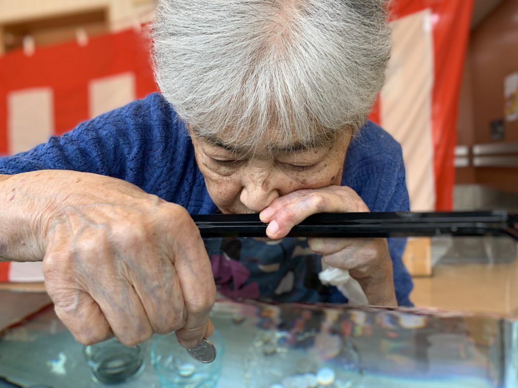 一円玉落とし、ひもボックス、ヨーヨー釣りをして頂きました♪