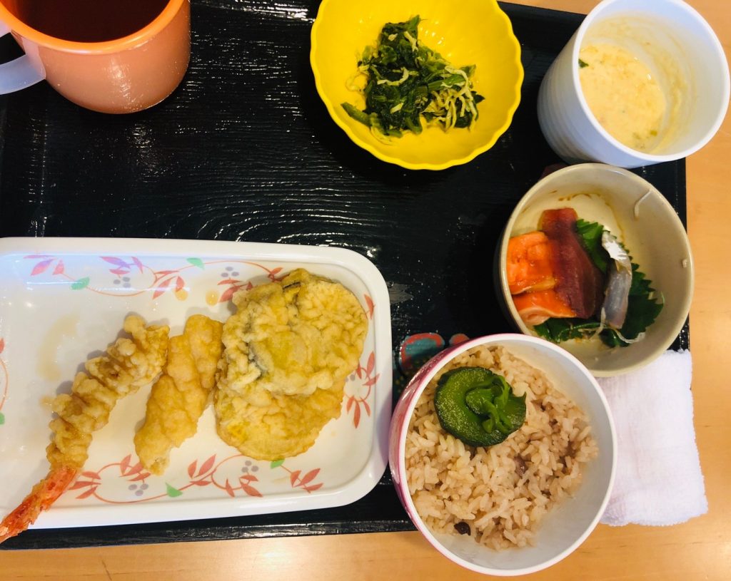 昼食はお刺身やら茶碗蒸しやら、豪華です???