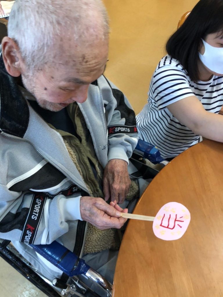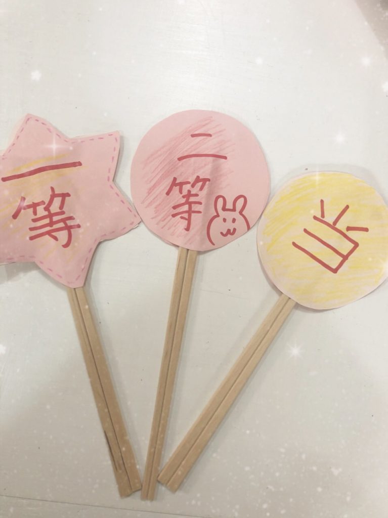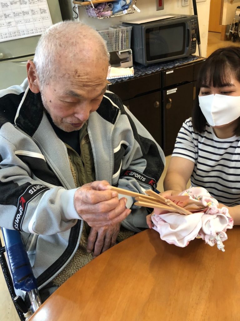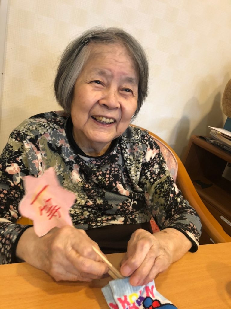 おやつを食べながら、ユニット内で、ご入居者の皆様と一緒に作ったくじ引きを楽しみました☆彡