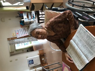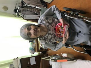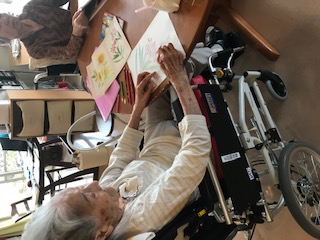 塗り絵を楽しまれておられました女性は、先日百寿のお祝いを申し上げたご利用者です?