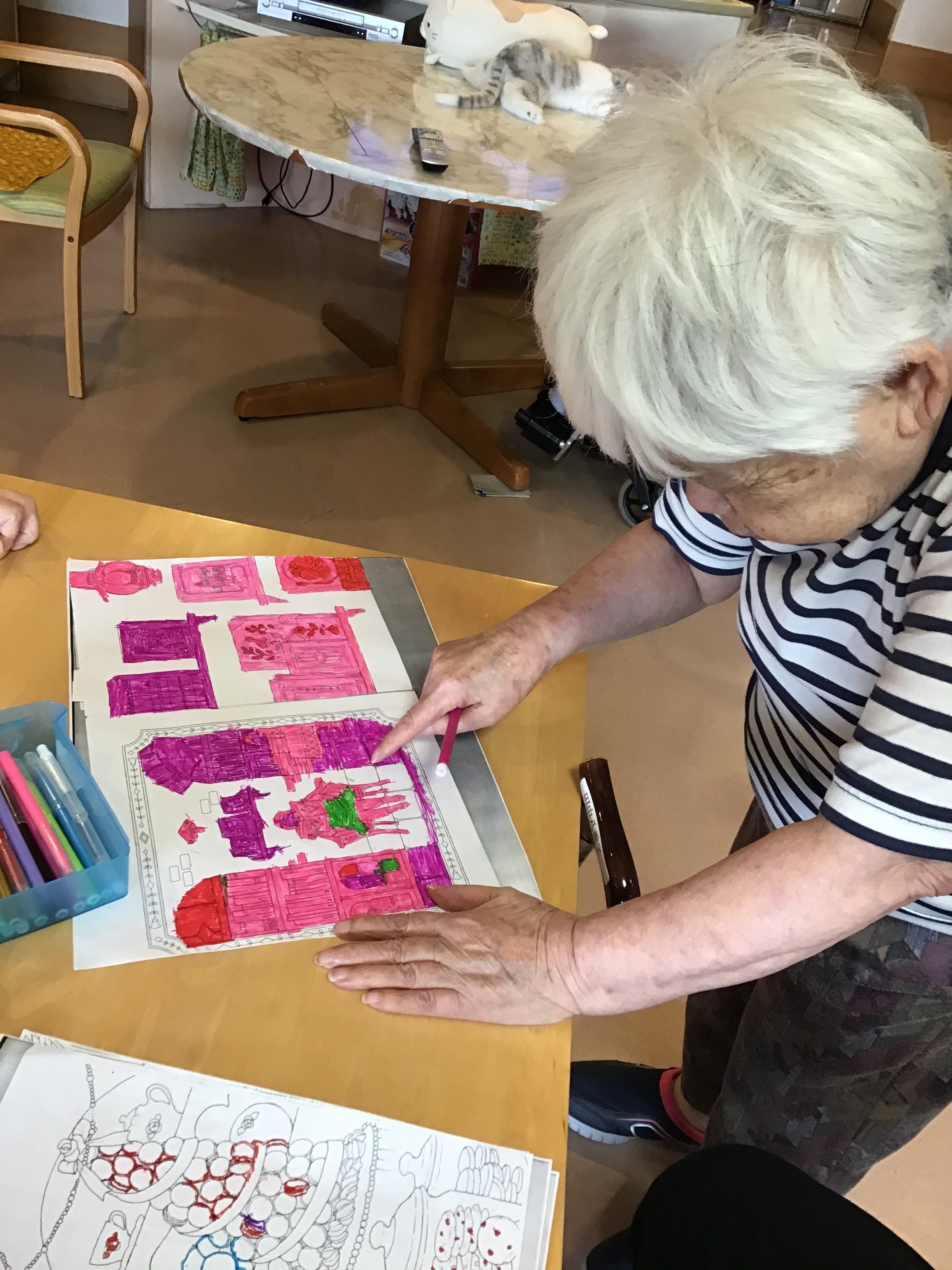 南3丁目ユニットには、普段から熱心に塗り絵に取り組まれておられるご利用者がいらっしゃいます。