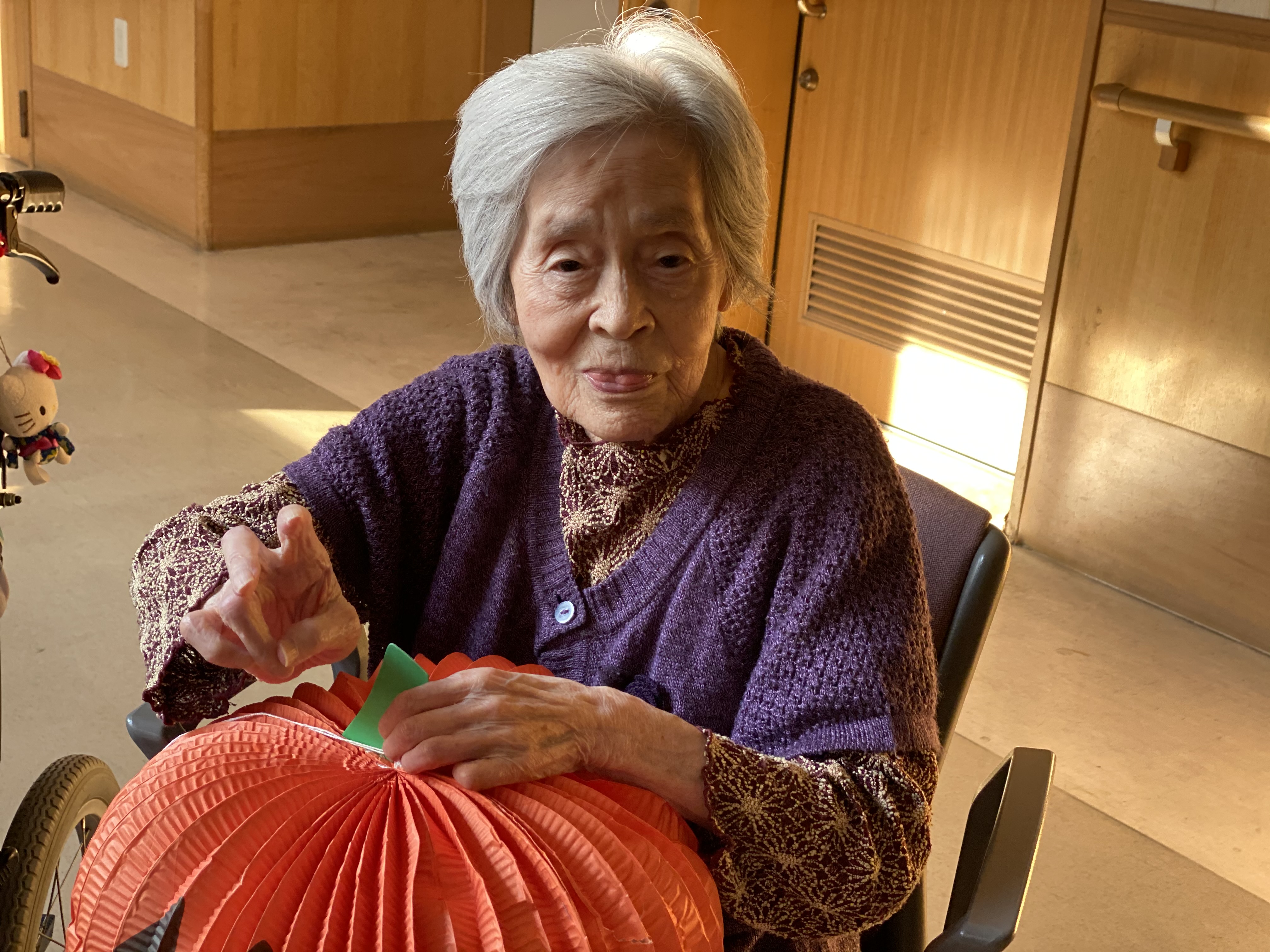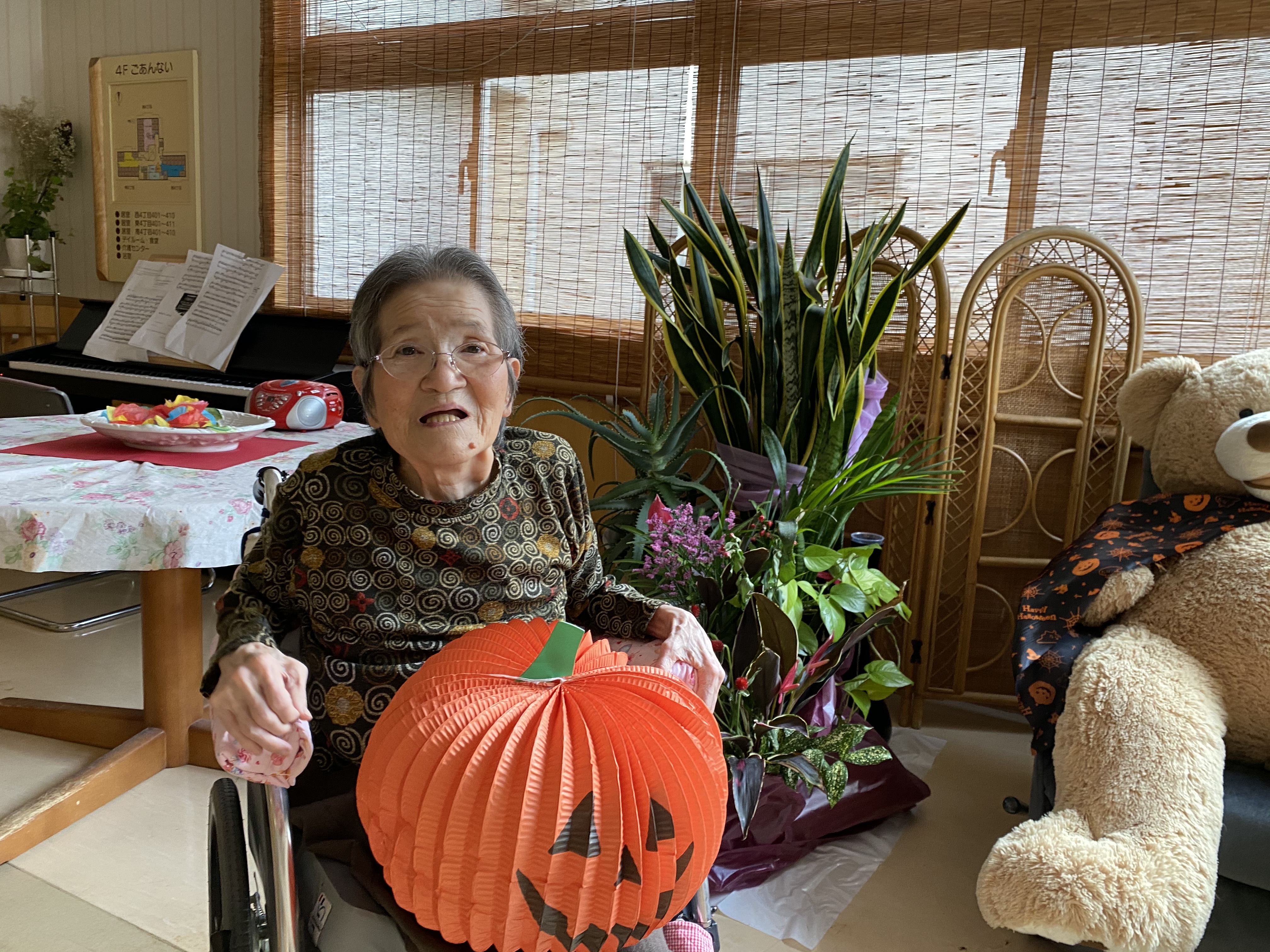 カボチャの置物も持ってこられており、とってもかわいいのでご利用者と一緒に写真撮影をしました♡