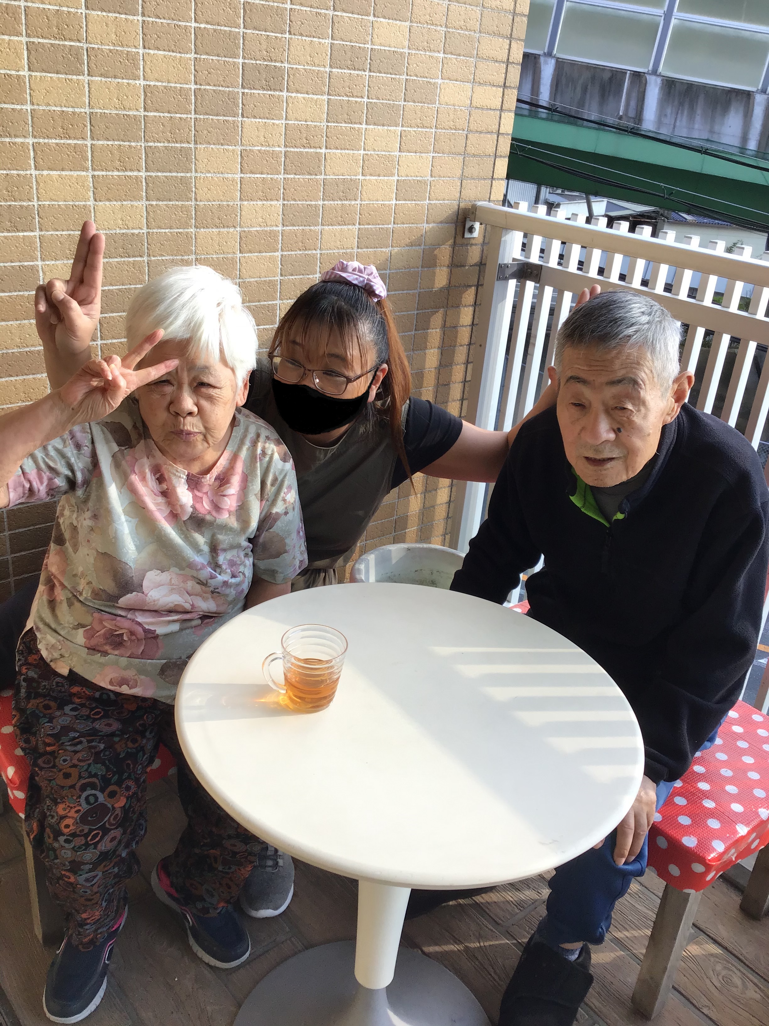 取り組みが終わった後は、ベランダに設置しているベンチに座って休憩します(^_^)