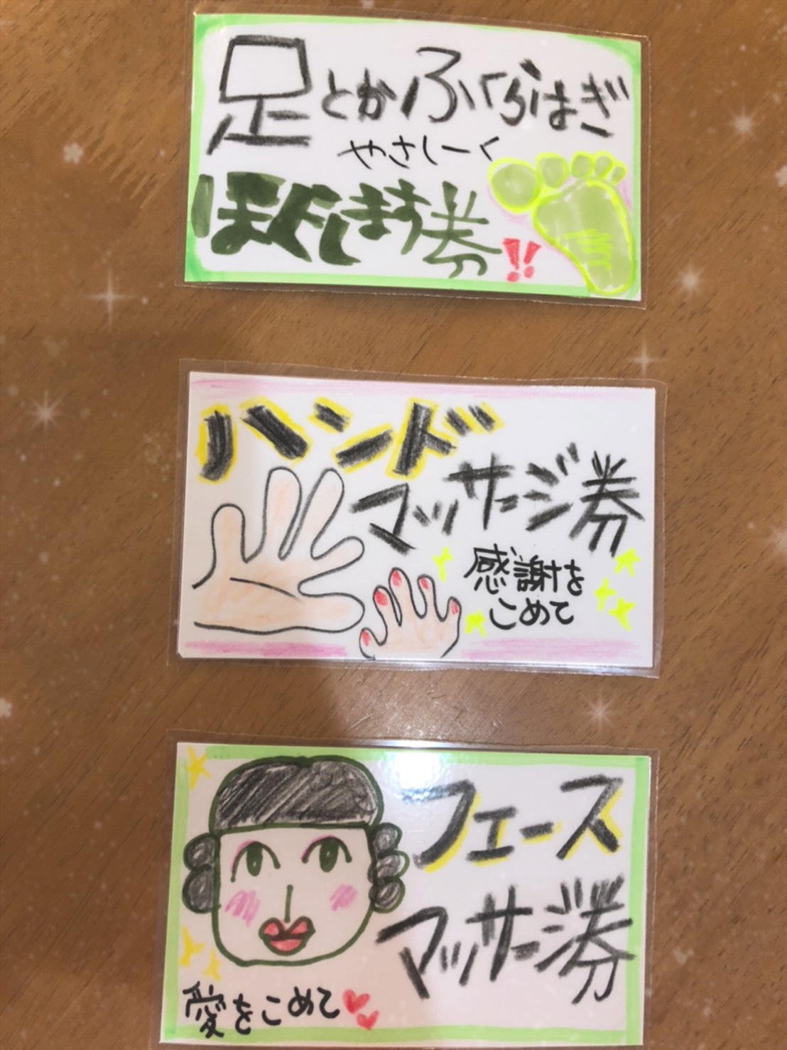 職員さん手作りのマッサージ券、カワイイ~~~♡
