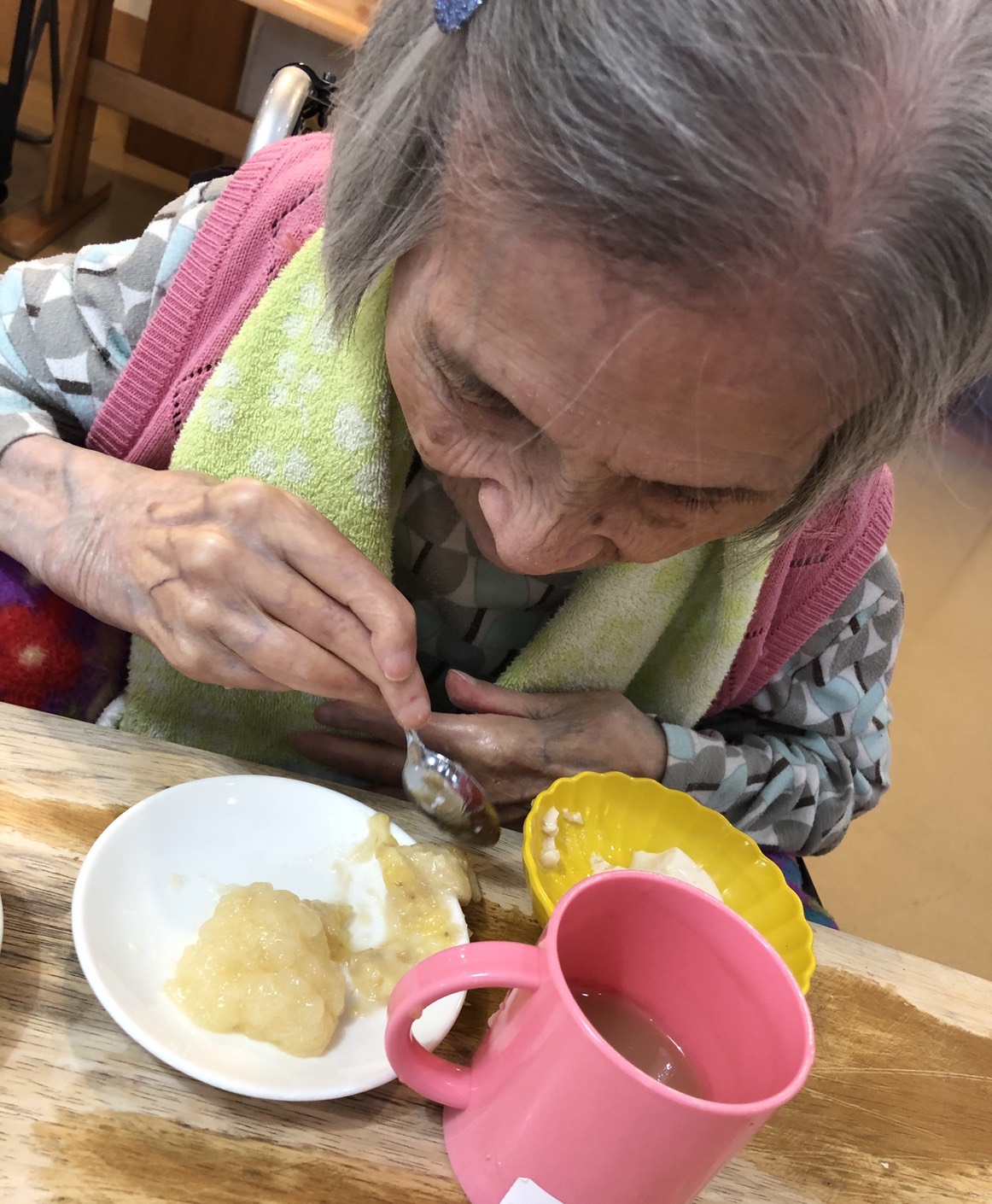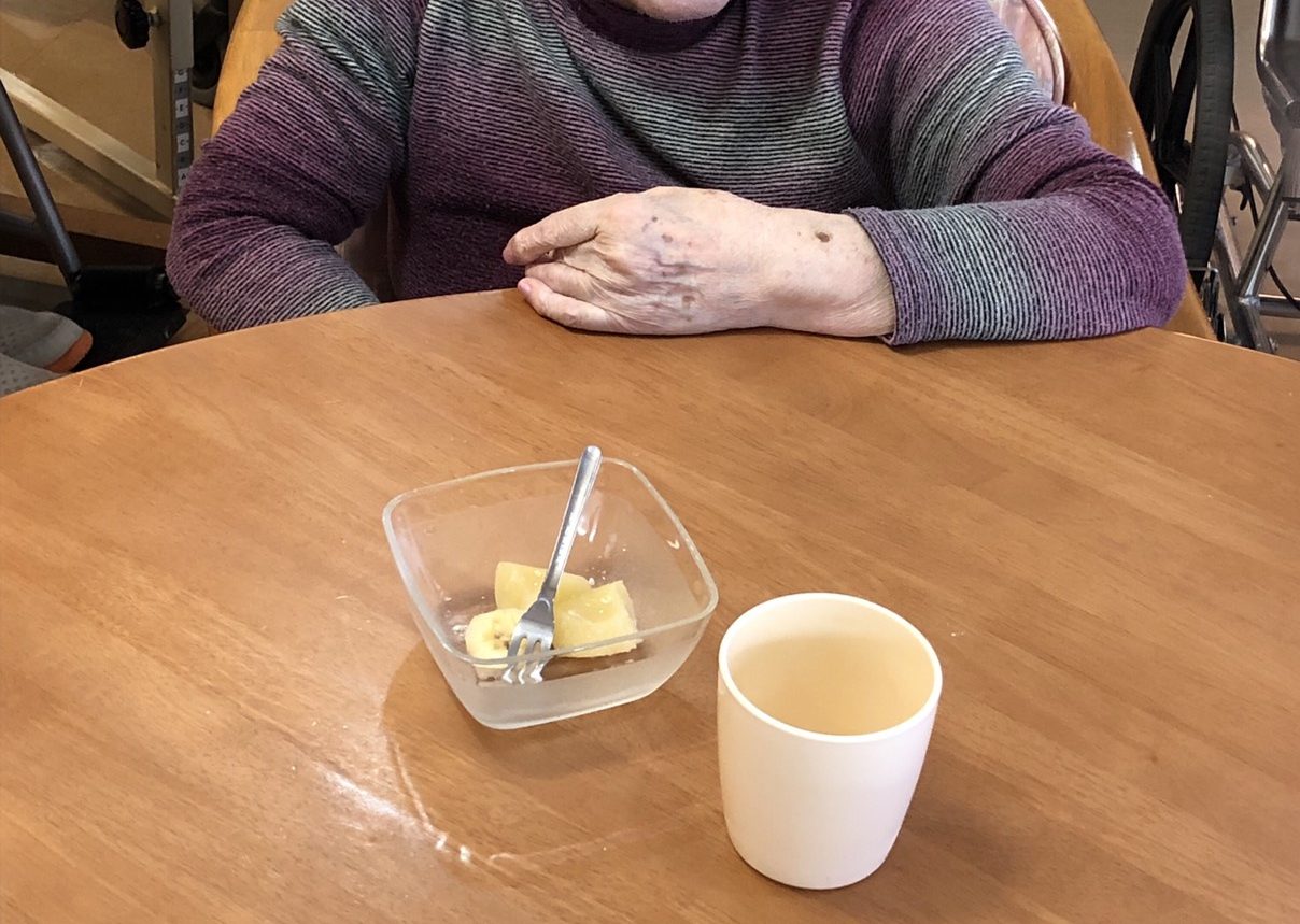 おやつに桃と、桃のジュースをご用意し桃づくし