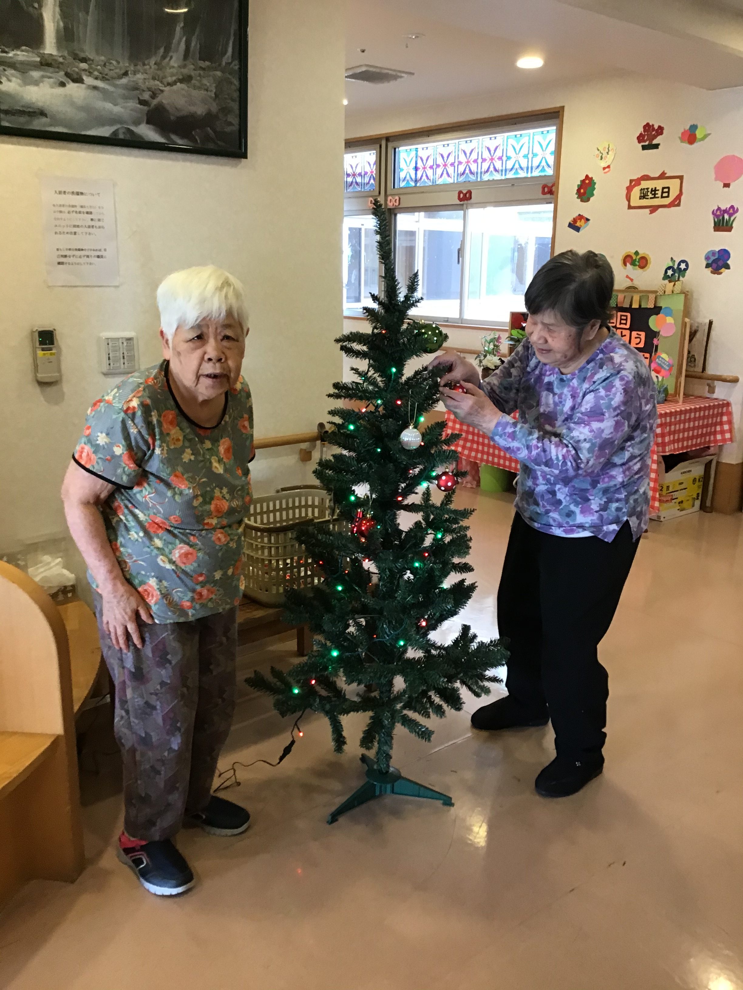 11月某日クリスマスの雰囲気を楽しむため、ツリーの飾りつけをしました。