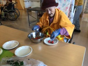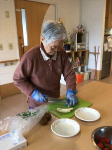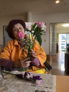 生け花の先生の様な手つきでいきいきとされ、周りにおられたご利用者からも綺麗ね!と称賛されていました。