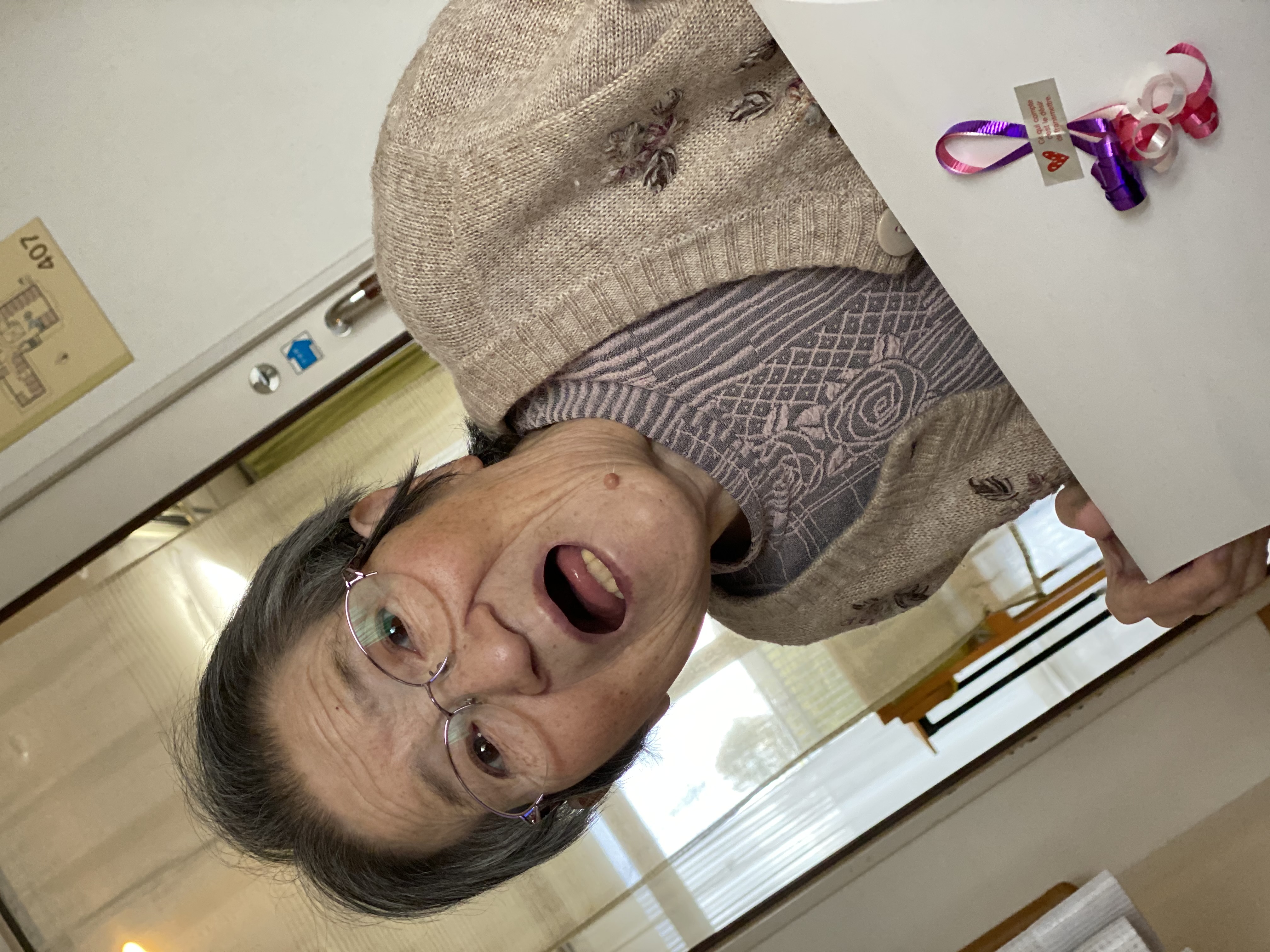 お部屋にプレゼントをお持ちし、プレゼントが届いたことを伝えると