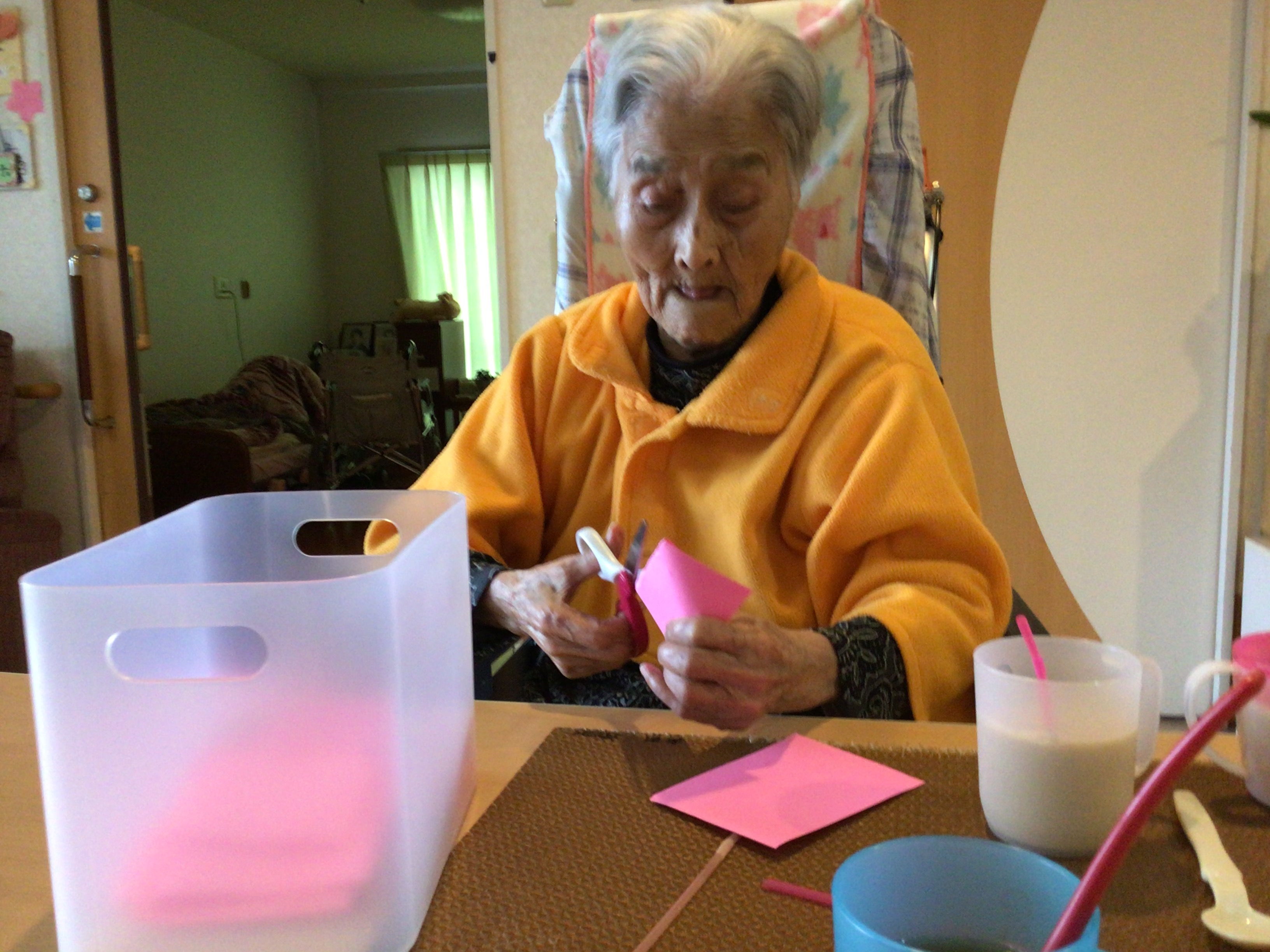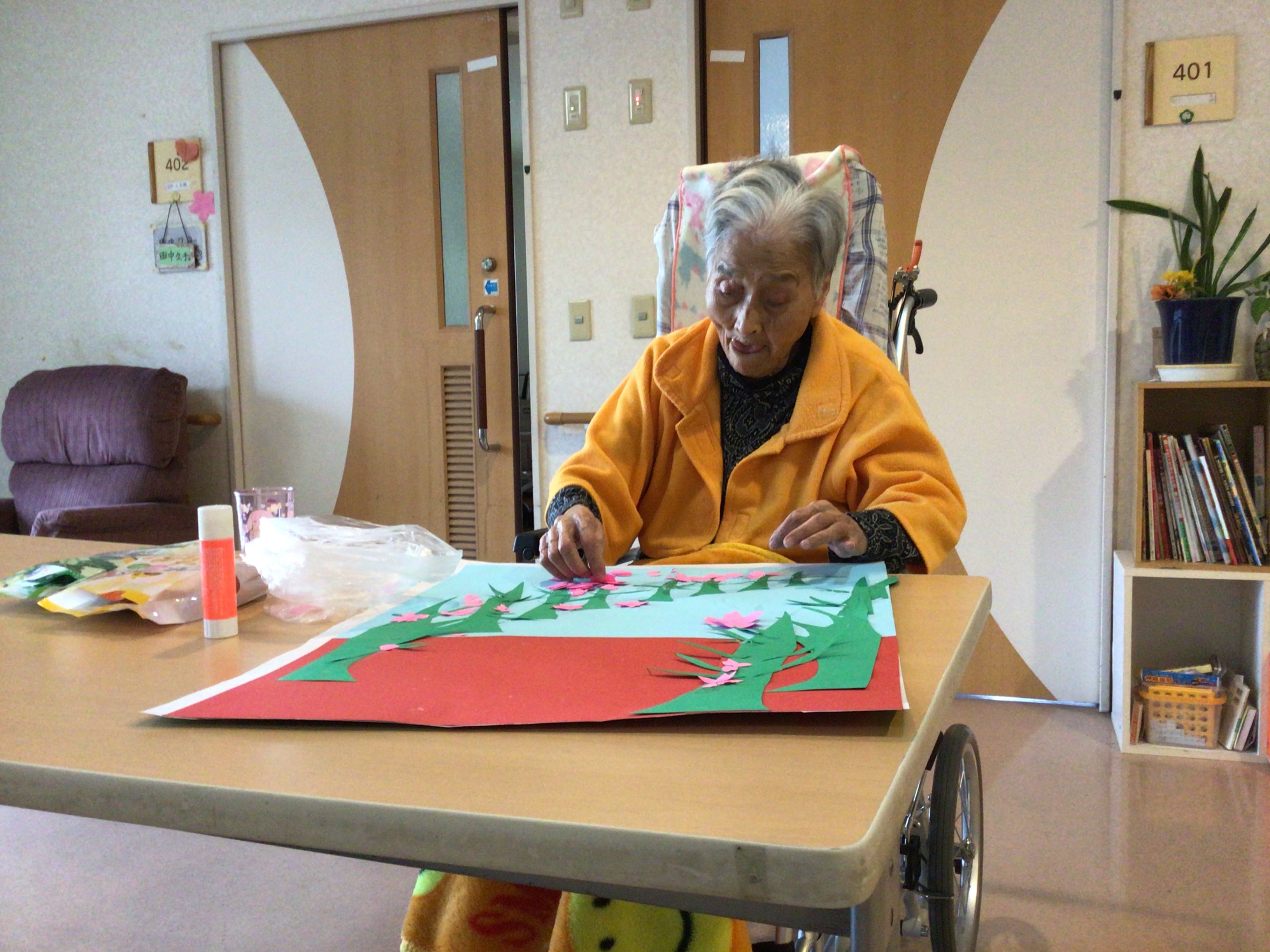 桜の花びらの様に、色画用紙を切って・・・貼って( ^ω^)・・・
