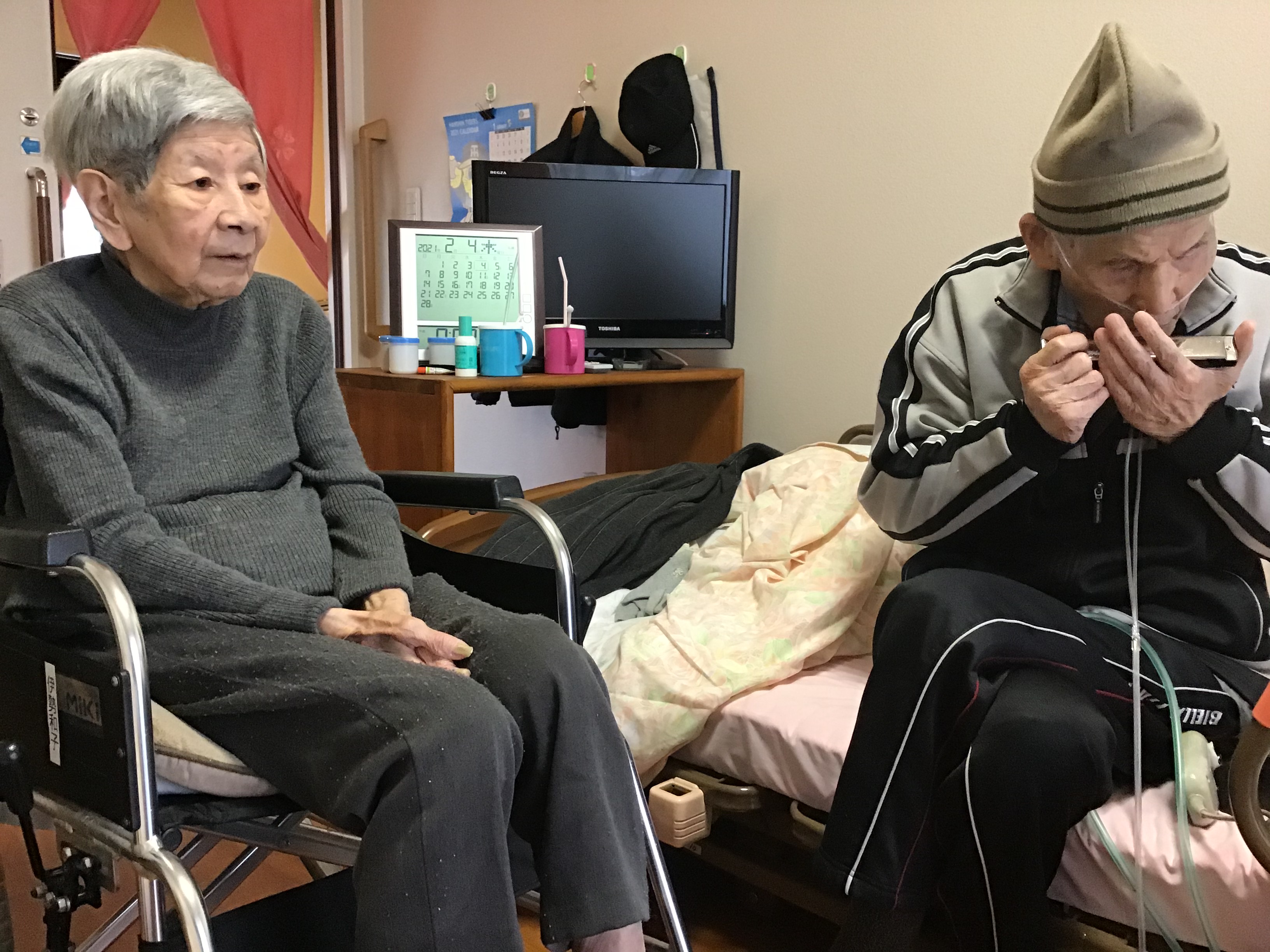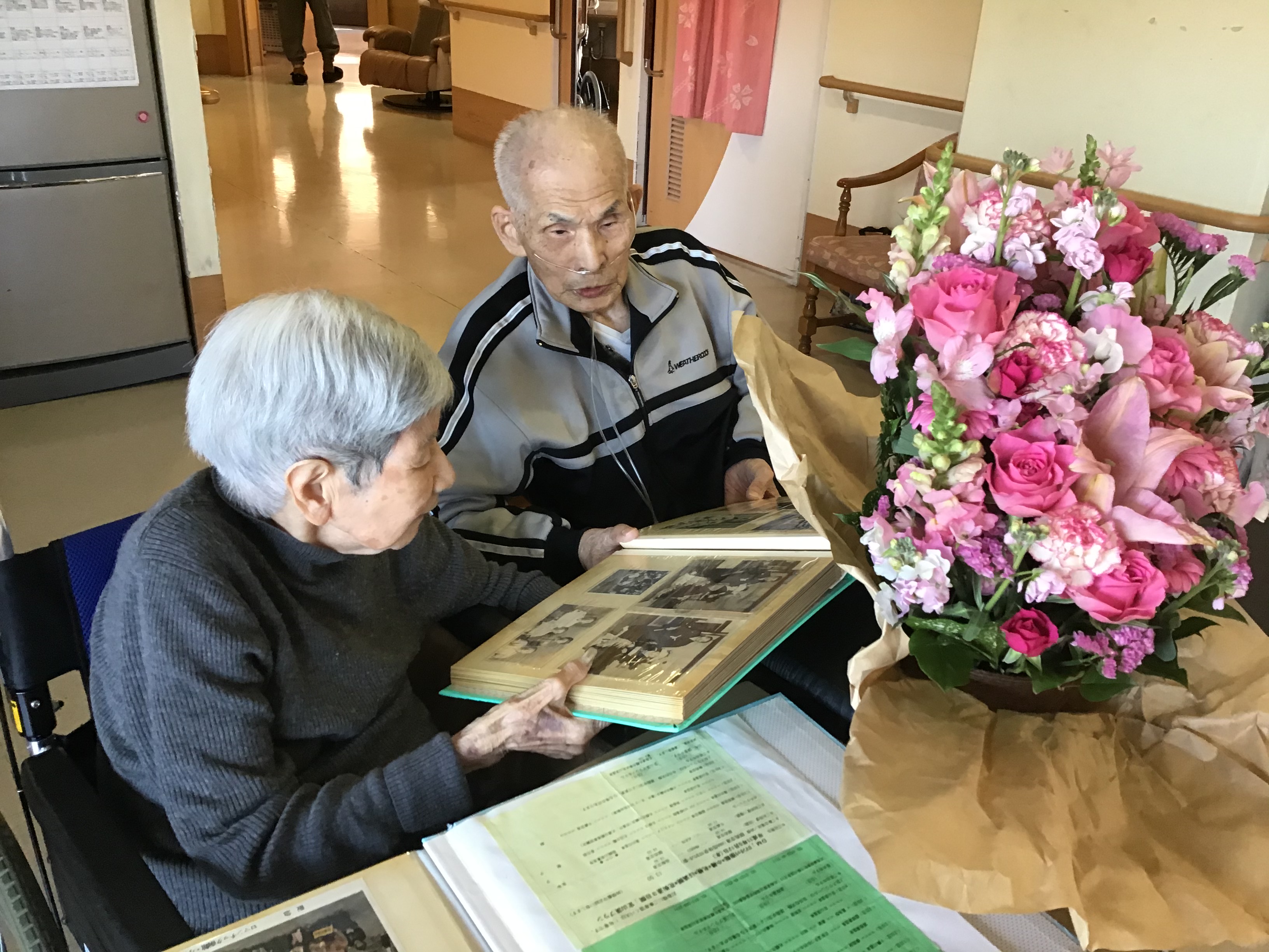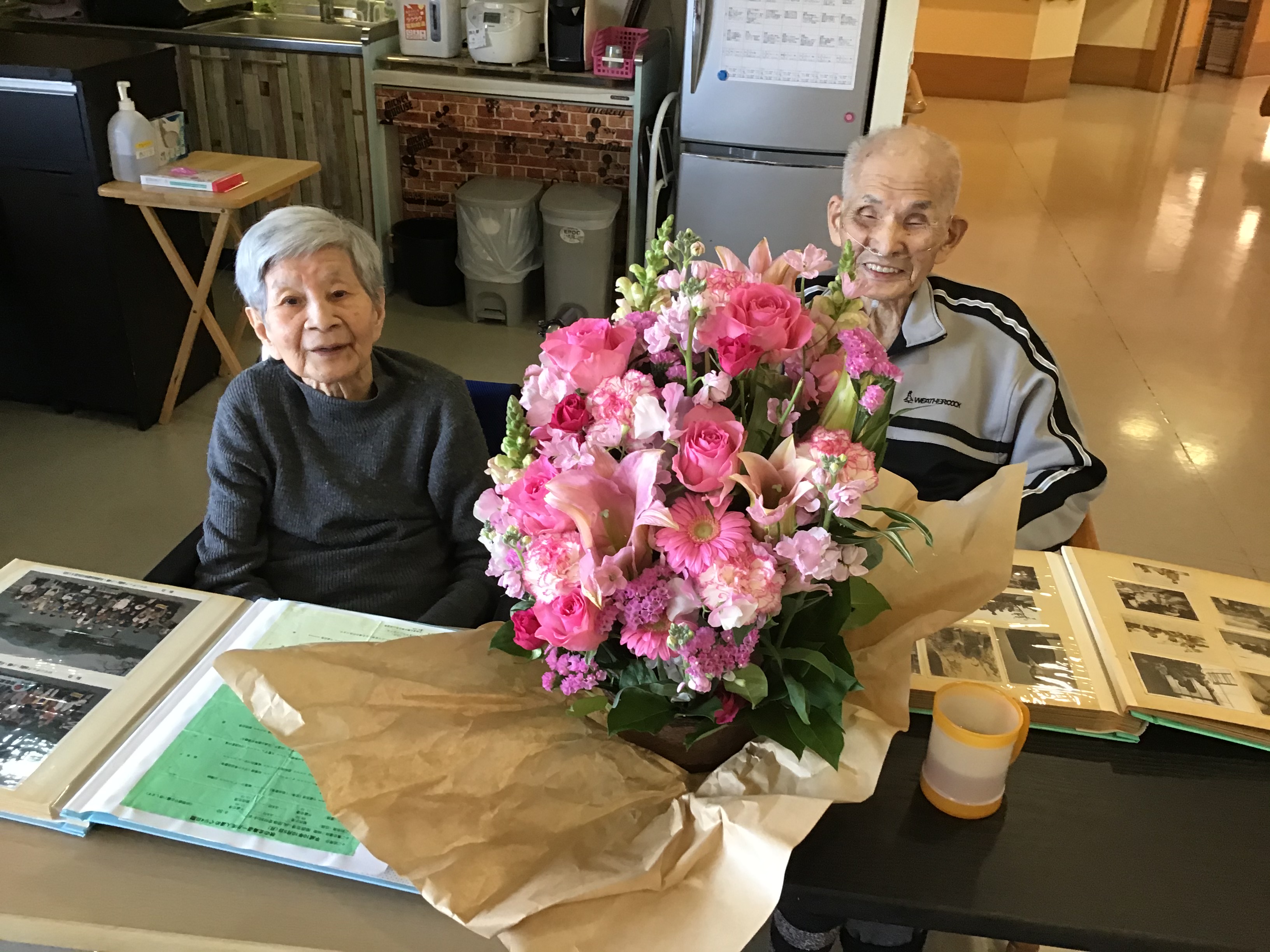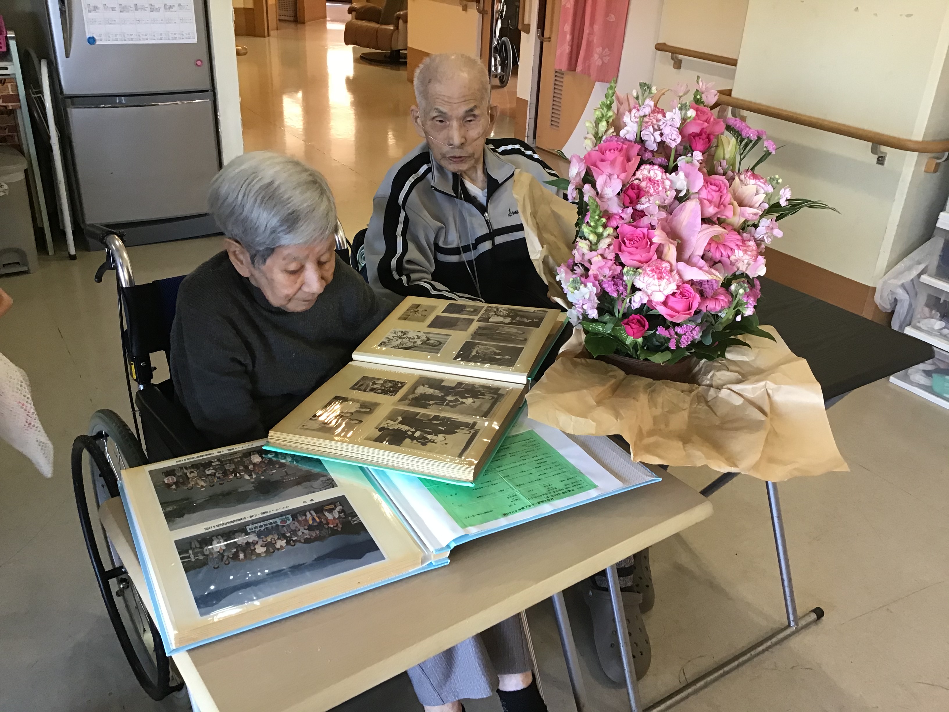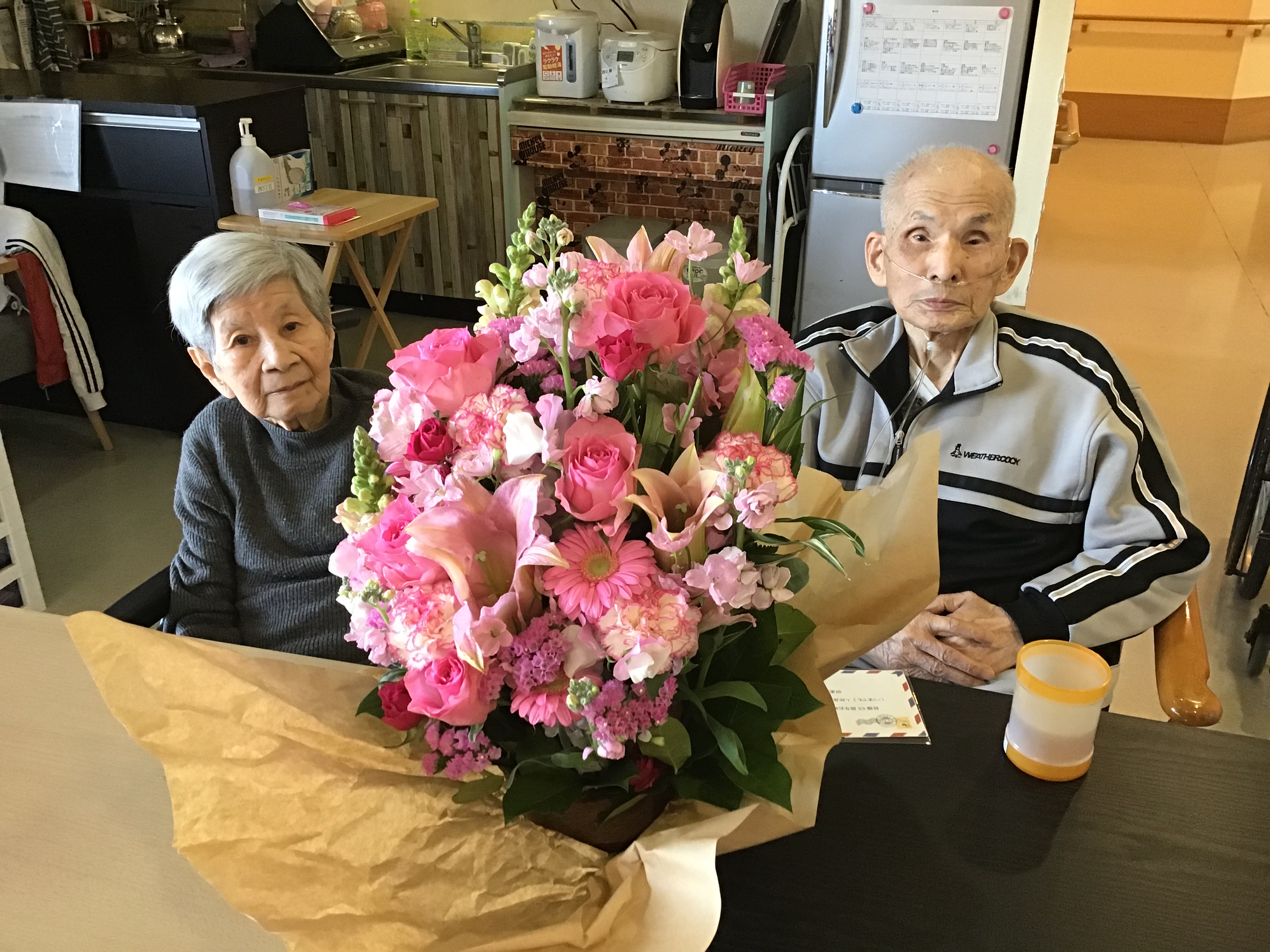 職員にも素敵な思い出話をいろいろと聞かせて下さったり、ハーモニカも吹いて下さいました。ありがとうございます(^_^) 本当におめでとうございます!これからも御夫婦共に末永く元気でお過ごし下さい。