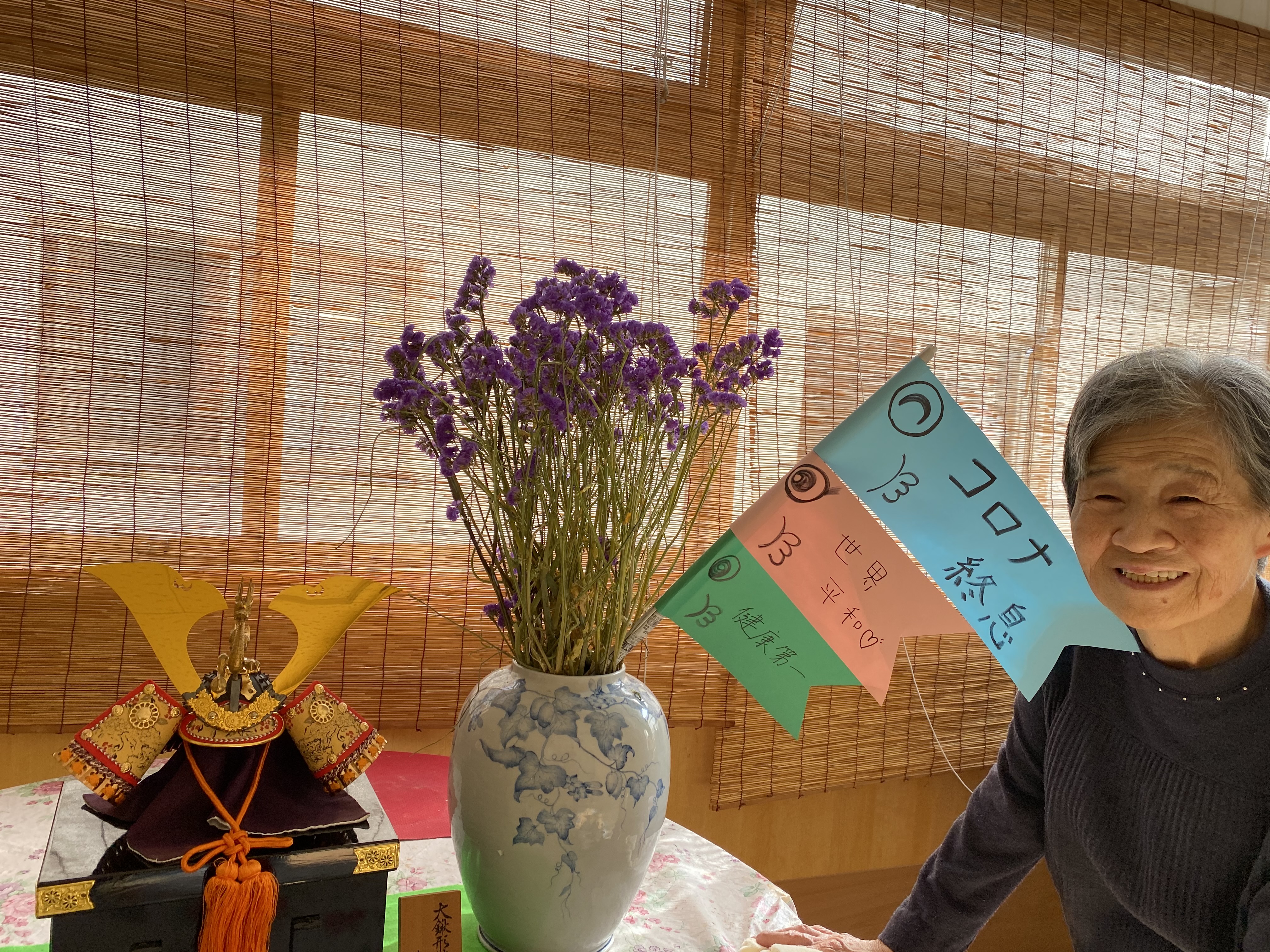 かぶとはベテラン職員さんが飾って、こいのぼりはパートさんが作ってくれました♡